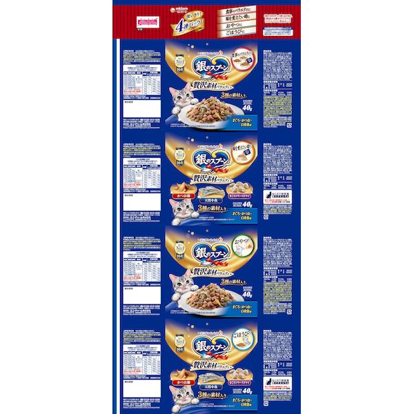 ユニ・チャーム 4520699621523 銀のスプーン 贅沢素材バラエティ まぐろ・かつお・白身魚味 40g×4個