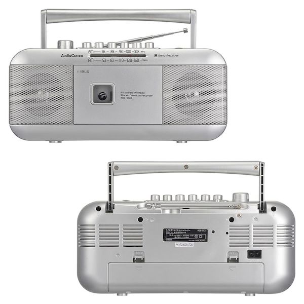 オーム電機 RCS-551Z ステレオラジオカセットレコーダ 口径77mmスピーカー2基/ワイドFM/11W/シルバー RCS551Z