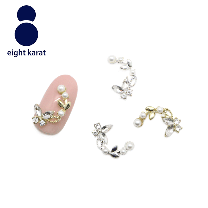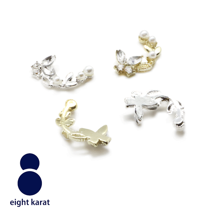 【スーパーSALE 限定クーポン!】バタフライ ネイルパーツ【4個セット】ゴールド シルバー 金 銀 蝶 蝶々ちょうちょ ネイルジュエリー カーブデザイン カーブ 立体パーツ ラインストーン パール 韓国 可愛い 華やか ワンホンネイル ジュエリー メタルパーツ
