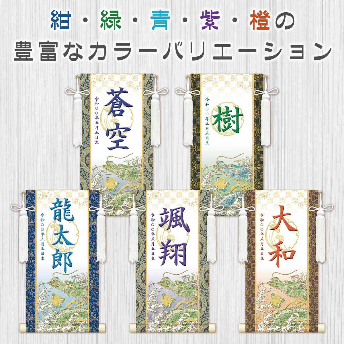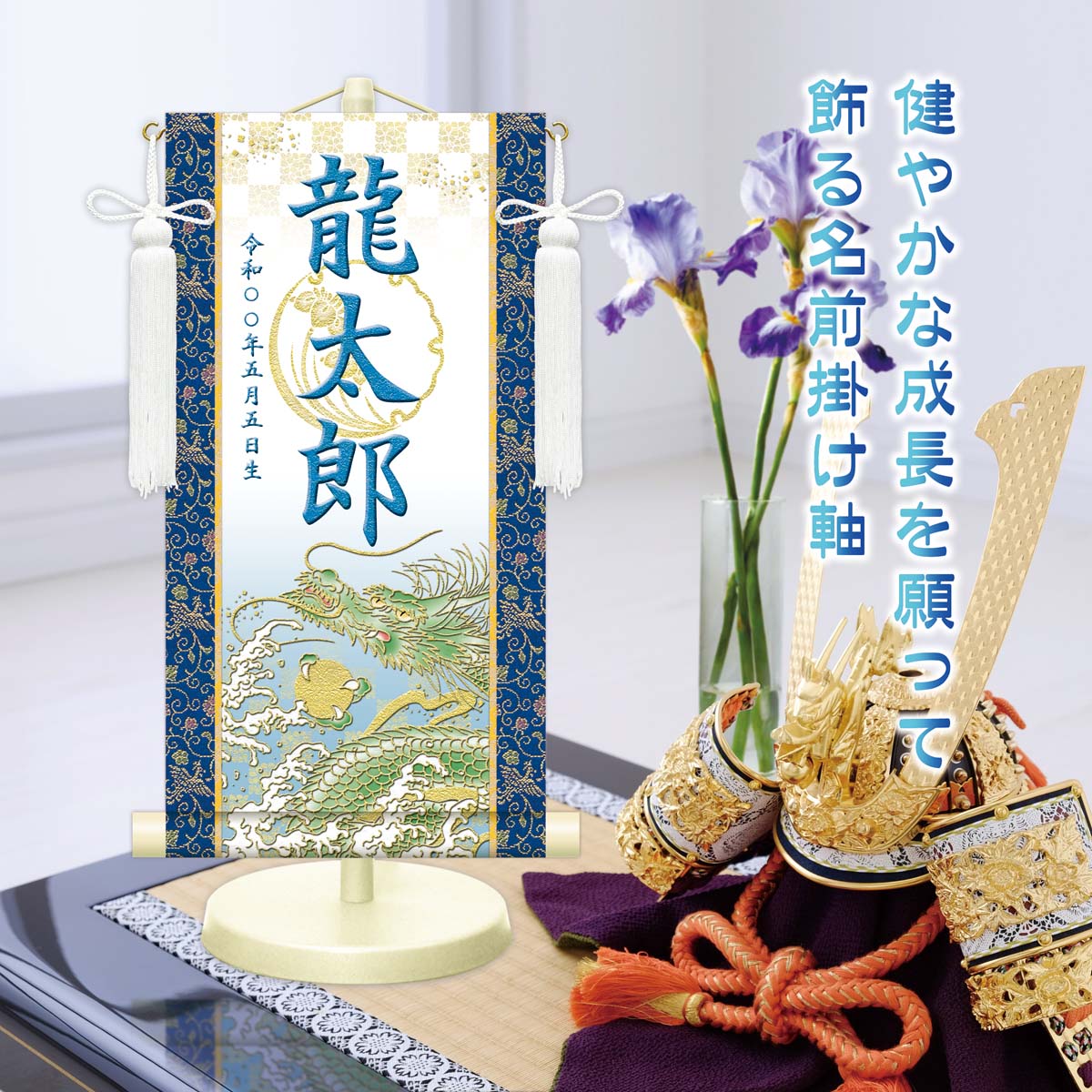 金襴名前掛軸(開運昇龍・白)選べる幸せの5色 台座付き 名前旗 男の子 日本製