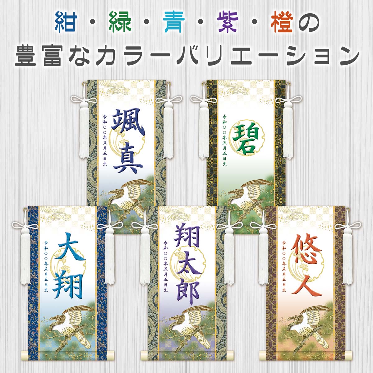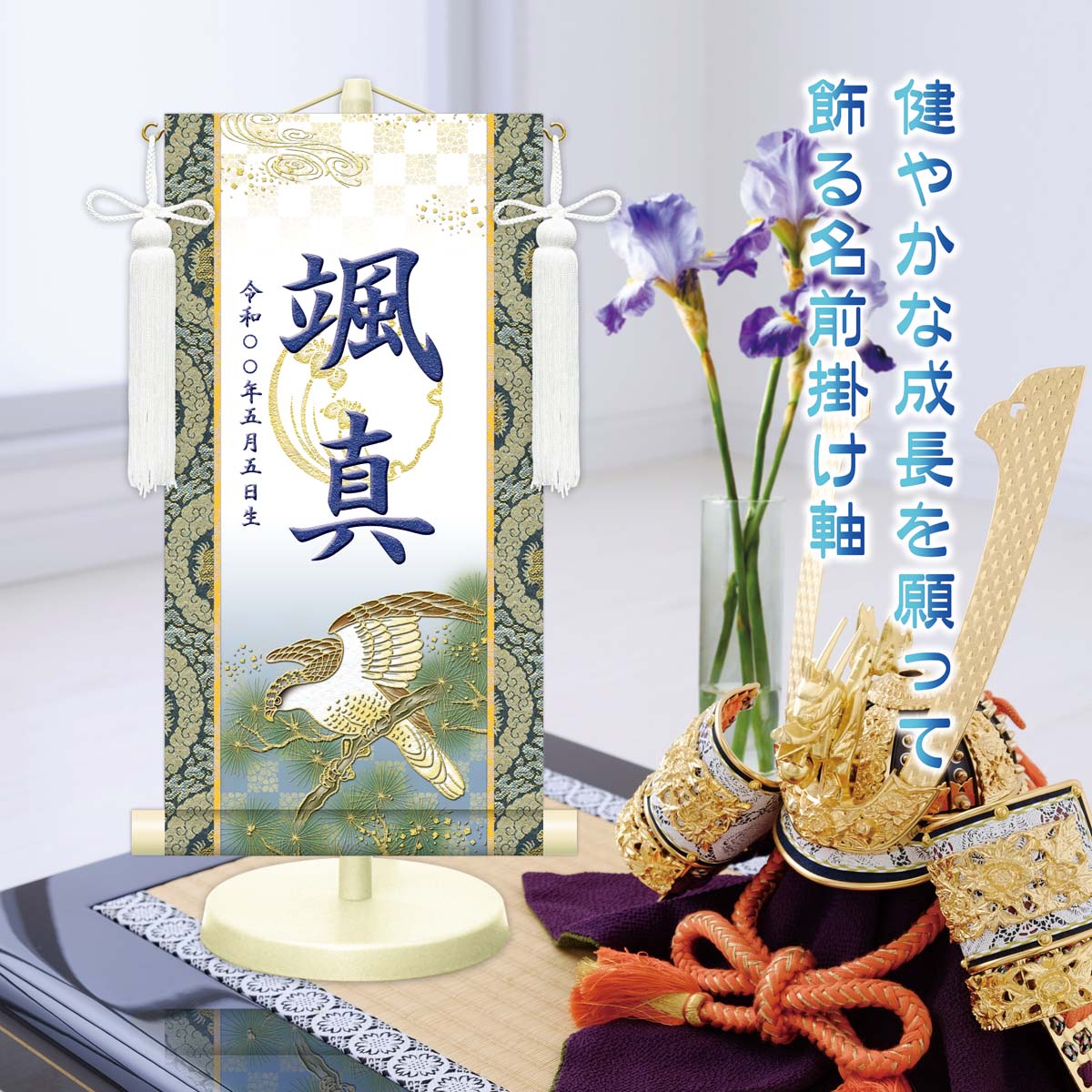 金襴名前掛軸(開運翔鷹・白)選べる幸せの5色 台座付き 名前旗 男の子 日本製