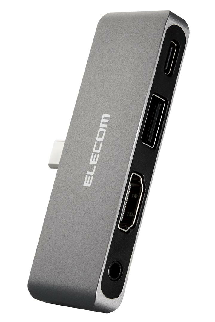 ■パソコンやタブレットPCのUSB Type-C(TM)ポートに直接接続するタイプのドッキングステーションです。ケーブルがないケーブルレス設計ですので、持ち運びに便利です。■パソコンやタブレットPCのUSB Type-C(TM)ポートに直接接続し、USB機器やHDMIディスプレイを接続できるドッキングステーションです。 ■USB Power Deliveryに対応したUSB Type-C(TM)を1ポート搭載しています。 ■USB Type-C(TM)コネクターを経由して最大60W(※)の電力をデバイス/パソコン本体に供給するUSB Power Deliveryに対応しています。 ■USB Type-C(TM)電源アダプターを接続することで、本製品を経由し、パソコン本体を充電することができます。 ■※製品本体にて5Wを消費しますので、実際の出力は最大55Wとなります。 ■※55Wで給電が必要な場合は、60W出力の充電器をご用意ください。 ■USB2.0に対応したUSB-Aポートを1ポート搭載しています。 ■パソコンから外部モニターへ映像出力ができるHDMIポートを搭載しています。 ■※本製品で映像出力を行う際は、機器がDisplayPort(TM) Alt mode対応していることを確認してください。 ■スマートフォンなどに搭載されているイヤホン/マイク兼用の3.5φ4極ステレオミニジャックを搭載しています。 ■USB Type-C(TM)コネクターは、表と裏がなく、向きを気にせず差し込み可能です。 ■※USB Type-C(TM)コネクターを標準搭載するパソコンでのみ使用可能です。 ■放熱性と耐ノイズ性に優れ、高級感のあるアルミ筺体を使用しています。 ■USB Type-Cポートに直接接続できるのでタブレットPCなどにおすすめです。 ■ケーブルがないケーブルレス設計ですので、持ち運びに便利です。 ■厚みの薄い(6mm未満)のタブレットPCに接続する際に、本体への負担を軽減するサポート用アタッチメントが付属しています。 ■本体に厚みのあるタブレットPCや、ケースを装着してお使いの場合は、サポート用アタッチメントを外してご使用ください。 ■サポート用アタッチメントはケースを装着した状態ではご使用いただけません。 ■※USB Type-C(TM)コネクターからの充電に対応しない本体の場合、本製品のUSB Type-Cコネクター経由での本体充電はできません。充電を行う際は、機器がUSB Power Deliveryに対応していることを確認してください。 ■※本製品はOS起動前のシステム画面やBIOS画面では動作しません。 ■※本製品はパソコン本体のUSB Type-C(TM)ポートに直接接続してください。USBハブや増設ボードのUSB Type-C(TM)ポートに接続した場合、本製品をご利用いただけません。 ■※USB Type-C and USB-C are trademarks of USB Implementers Forum ■自社環境認定基準を1つ以上満たし、『THINK ECOLOGY』マークを表示した製品です。 ■廃棄物削減に取り組み、製品に同梱する取扱説明書等をペーパーレス化した製品です。 ■環境保全に取り組み、製品の包装容器におけるプラスチック重量を、社内基準製品より20%以上削減した製品です。 ■環境保全に取り組み、製品の包装容器が紙・ダンボール・ポリ袋のみで構成されている製品です。■対応OS(Windows):Windows 11/Windows 10■対応OS(mac):macOS Ventura 13/macOS Monterey 12■対応OS(iPadOS):iPadOS 16■対応OS 備考:※各OSの最新バージョンへのアップデートや、サービスパックのインストールが必要になる場合があります。■コネクタ仕様(アップストリーム):USB Type-C(TM)プラグ<USB 5Gbps(USB3.2(Gen1))>、USB Power Delivery対応(最大入力60W/最大出力55W)、DisplayPort(TM) Alt mode (USB2.0接続時は、USB2.0互換で動作(USB2.0時は、映像出力非対応))■USBポート(ダウンストリーム):1:USB Type-C(TM)ポート×1<最大出力55W> ※充電専用USB Power Deliveryポート■USBポート(ダウンストリーム):2:USB-Aポート<USB2.0、供給電力値:2.5W(5V/0.5A)>×1■映像出力ポート(ダウンストリーム):HDMIポート×1<対応解像度:最大4K/60Hz>■音声ポート(ダウンストリーム):3.5mm 4極ステレオミニポート(CTIA方式)■電源方式:バスパワー■カラー:シルバー■外形寸法:幅約80mm×奥行約25mm×高さ約10mm ※突起部分含まず■動作環境:温度5〜40℃、湿度30〜80% ※結露なきこと■保証期間:1年間■付属品:サポート用アタッチメントエレコムダイレクトショップ