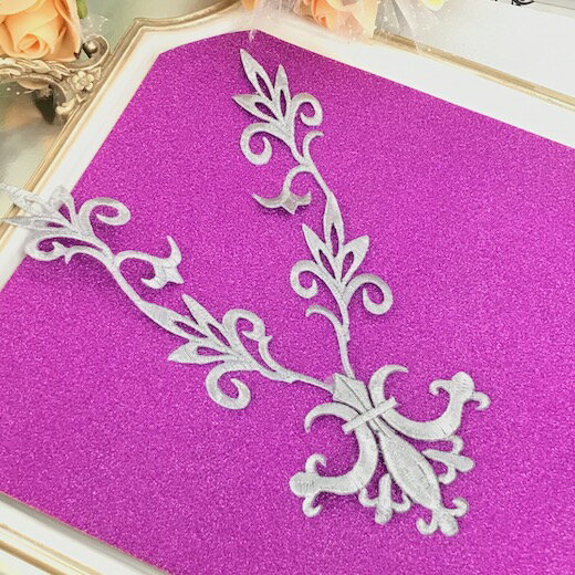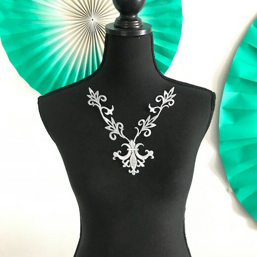 ネックライン アップリケ 装飾 衣装用 シルバー 刺繍ワッペン レオタードモチーフ アイロンワッペン アイロン接着 アップリケワッペン パーツ ハンドメイド 素材 モチーフ 装飾 バトントワリング