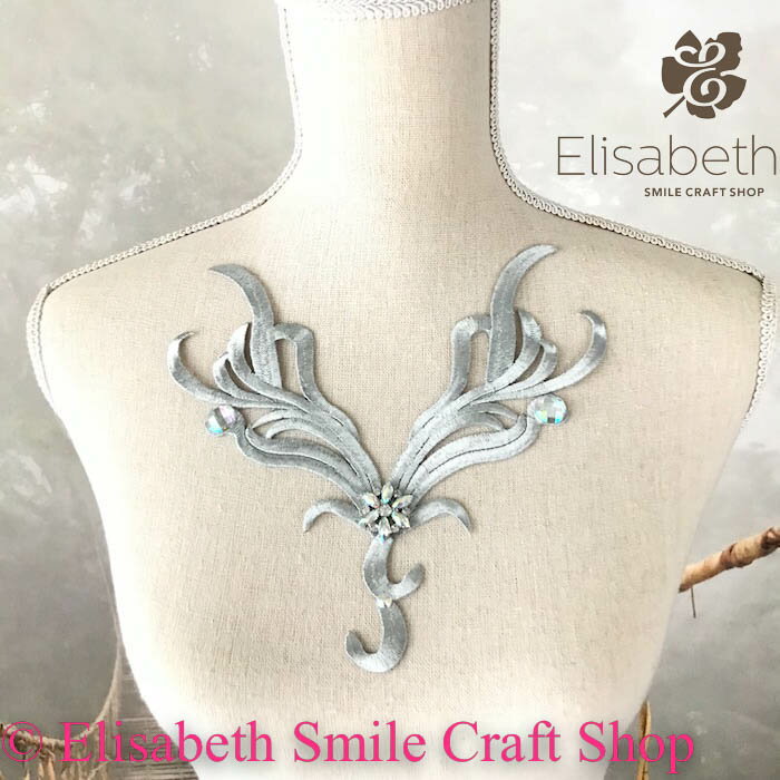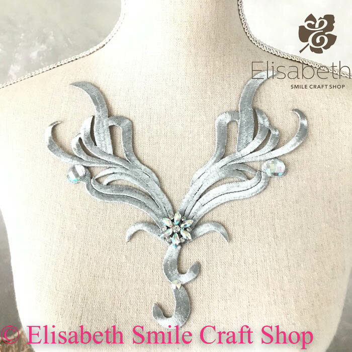 アイロン接着できるシルバーのラインストーン付き 刺繍ワッペンモチーフになります。 各種イベント、社交ダンス、ドレス、ステージ衣装、 舞台衣装、新体操、バトントワリング、レオタード、 演劇、ミュージカル、ベリーダンス、フィギュアスケート、 バレエ衣装、ウェディング、パーティーなど、 用途に合わせて楽しめるお洒落なアイテムです。 アイロン接着or縫い付けも可能です。 サイズ:H20cm W20cm カラー:シルバー・ストーン ※当店オリジナルデザインです。 アイロン接着できます。 140℃〜160℃位で圧着してください。 熱が冷えるまで動かさないでください。