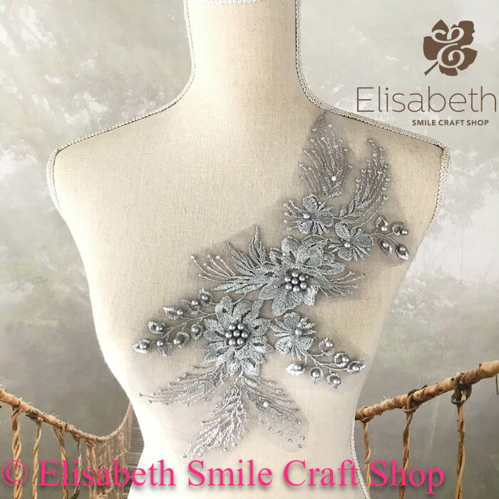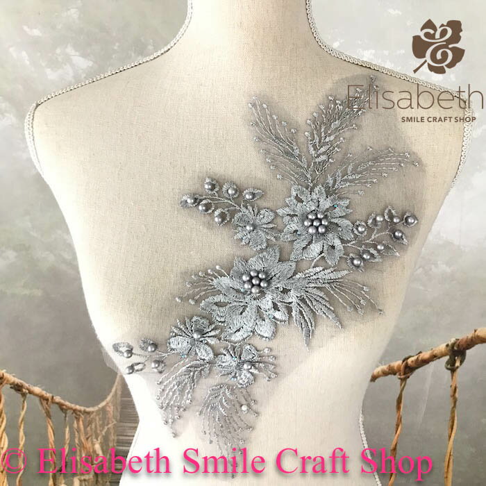 レースモチーフ モチーフ 衣装 バトンモチーフ お花 装飾 服飾 バトントワリング レオタード 新体操 衣装作り バレエ衣装 舞台衣装 ステージ衣装 ダンス衣装 社交ダンス フィギア衣装 花柄 シルバー グレー
