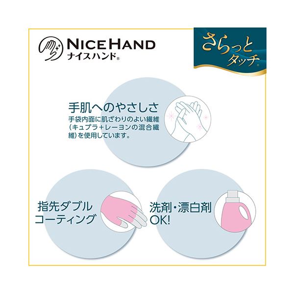 ■サイズ・色違い・関連商品■S パールピンク■M パールピンク■M パールグリーン[当ページ]■L パールグリーン■商品内容【ご注意事項】この商品は下記内容×30セットでお届けします。ショーワグローブ さらっとタッチ Mサイズ パールグリーン■商品スペック細くてやわらかいオリジナルパイルを手袋の内面に採用。さらっとした肌ざわりを実現しました。●全長:300mm●中指長さ[mm]:77●裏素材:キュプラ、レーヨン●色:パールグリーン●滑り止め:有●規格:M●仕様:裏毛つき●材質:樹脂部=塩化ビニル(非フタル酸エステル系可塑剤使用)、繊維部=キュプラ、レーヨン●注意事項:調理用手袋としてのご使用はお避けください。●植毛加工あり●調理用手袋としてのご使用はお避けください。■送料・配送についての注意事項●本商品の出荷目安は【1 - 5営業日 ※土日・祝除く】となります。●お取り寄せ商品のため、稀にご注文入れ違い等により欠品・遅延となる場合がございます。●本商品は仕入元より配送となるため、沖縄・離島への配送はできません。