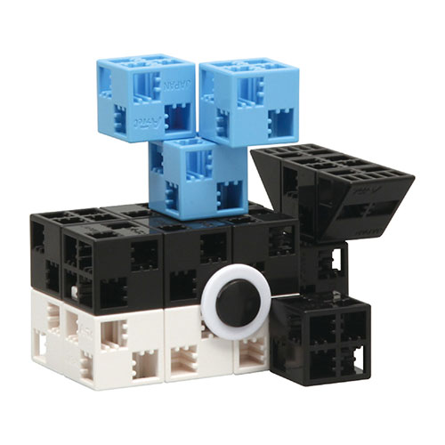 Artecブロック日本で生まれた新しいブロック、Artecブロック。商品サイズ:基本四角…W20×H20×D20mm、三角A…W20×H20×D20mm、丸…φ20mm セット内容:30pcs ●基本四角…(水, 白)×各7、 ペールオレンジ×2、黒×各10 ●三角A…黒×2 ●丸×2 重量:155g 材質:ABS 包装形態:ヘッダー付化粧箱 包装サイズ:190x125x35mm