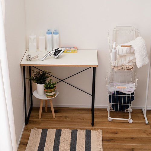 デスクシンプルでコンパクトなワークデスク。ひとつでも組み合わせても、作業でもデスクワークでも機能や強度を持たせつつ余計なものは取り除いた極限までシンプルなデザインのデスクです。 ●天板表面はPVCシートで簡単お手入れ ●木目のエッジ ●天板前部の角にRが掛かっています ●壁付け可能(背面側のエッジは直角)サイズ:W80×D48×H75(cm) 素材:合成樹脂化粧繊維板 スチール(粉体塗装) 静的耐荷重:20kg 組立状態:組立式 付属工具:六角レンチ 組立人数:1人 組立時間:15分 原産地:台湾