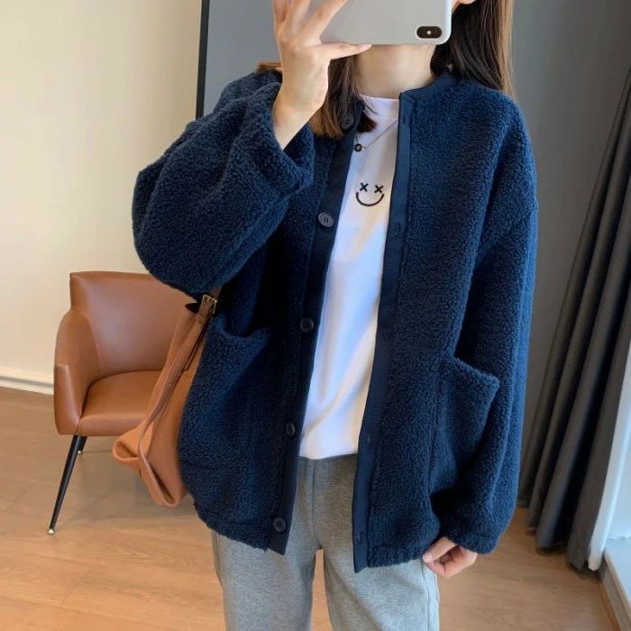 ス もこもこ ゆったり 体型カバー 無地 秋冬 防風 防寒コート 長袖 ボアコート 厚手 冬用 腰丈 ボアアウター ノーカラー コーデ