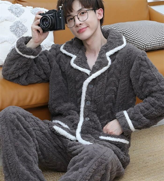 パジャマ メンズ ルームウェア 上下セット もこもこ パジャマ 長袖 ボア ナイトウェア 前開き 部屋着 可愛い 男性 肌触り 裏起毛