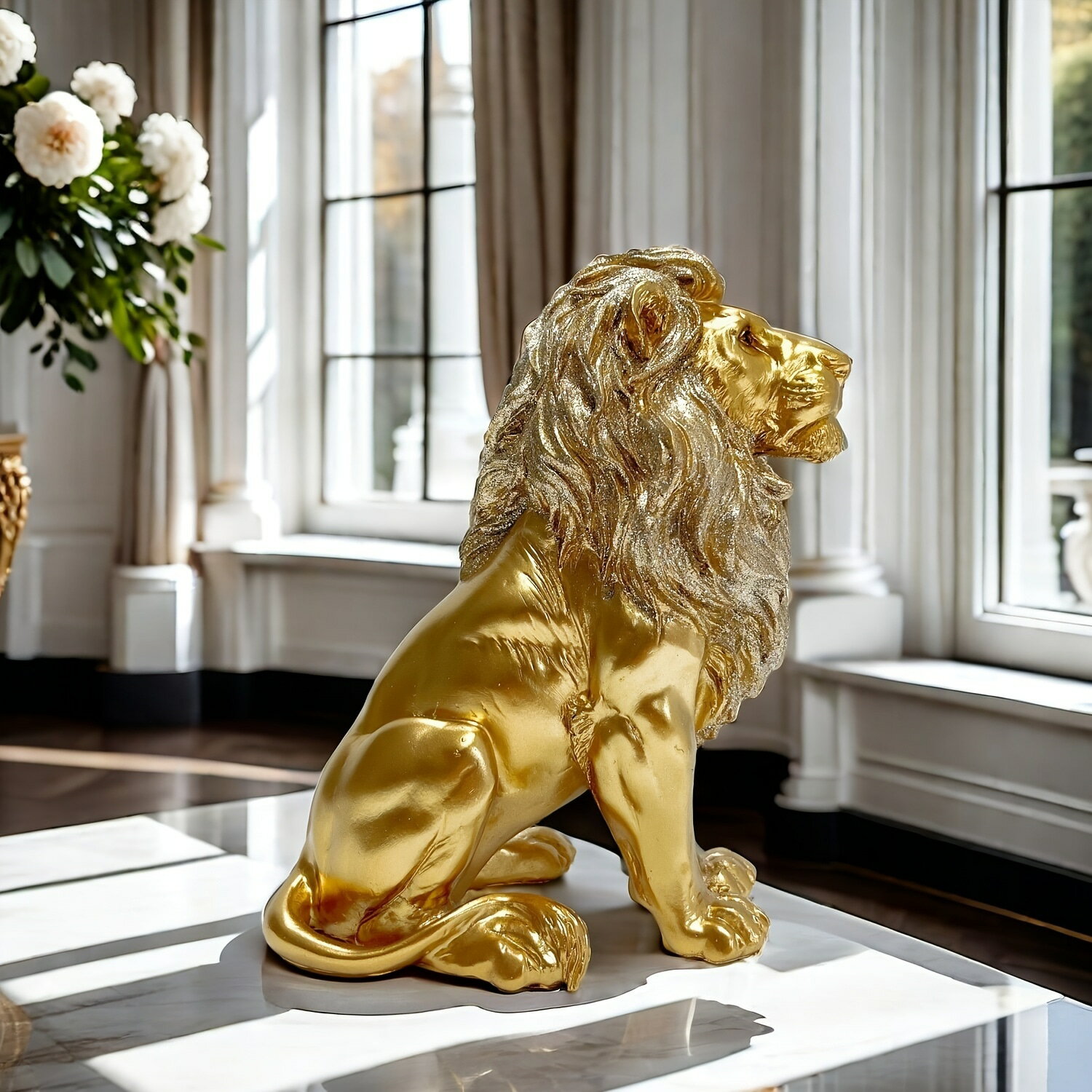 ライオン置物 オブジェ ライオン 動物 彫刻 ライオン像 ミニサイズ 卓上 アニマルモチーフ ゴールド インテリア 玄関 リビング ダイニング ホームデコレーション