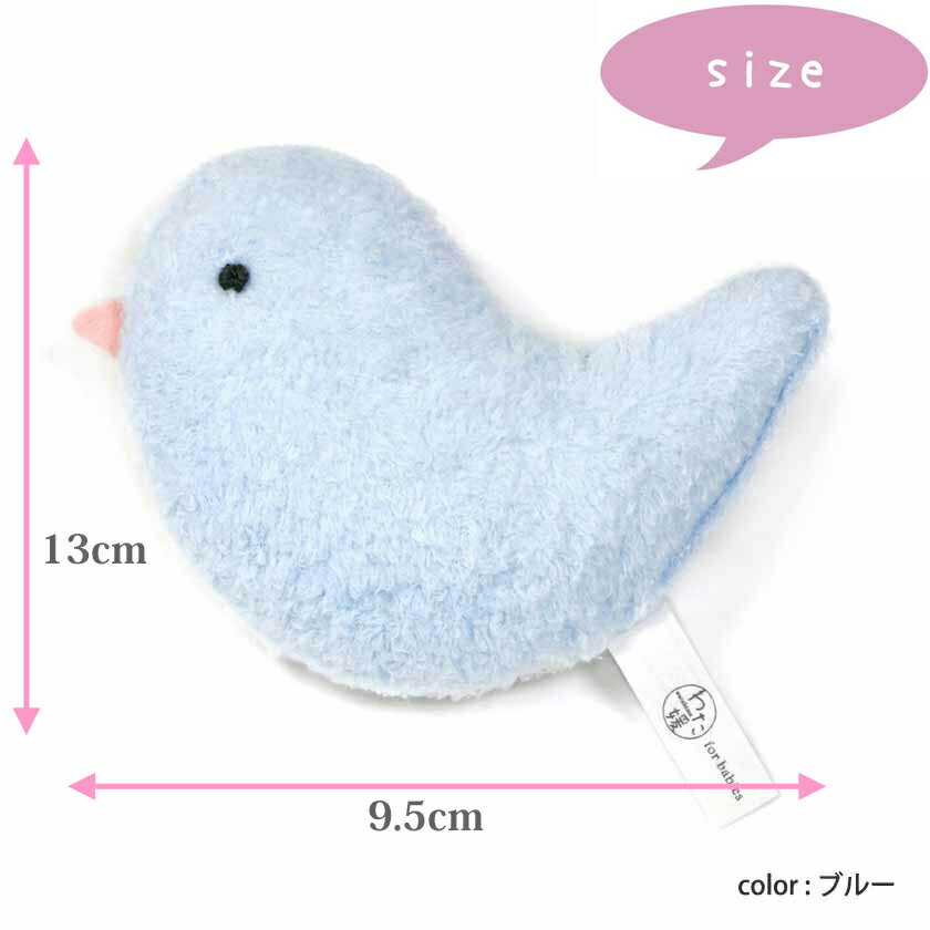【まるでお菓子のようにふわふわなひよこのニギニギおもちゃ】ミネラル分が豊富な土壌と天然水を利用して成育された最高級の超長綿を使用しています。さらに細い糸を使ってやさしく織り上げているから軽くてふんわりフワフワ。毛羽落ちもすくなく吸水性にも優れています。【鈴入りでかわいい音に赤ちゃんの笑顔が広がります】中に鈴が入っているので、振るとリンリンと可愛らしい音がなります。目は刺繍なので、誤飲の心配もありません。よごれてもお洗濯できるので、衛生面も安心です。初めて触れる気持ちよさは、なんだかママのぬくもりがします。プレゼントにもピッタリです。【安心・安全の日本製】老舗の今治タオルメーカーが作る綿100%のニギニギおもちゃなので赤ちゃんにも安心。コットンなので洗濯もしやすいです。ブルー、ピンク、イエローの3色からお選びいただけます。【サイズ】13×9.5×3cm【素材】コットン(綿)100%【生産国】日本、今治タオル※商品のお色は照明やブラウザの関係で実物と多少の違いが生じることがございます。※生地の取り方により、柄の位置等写真と異なる場合がございます。ご了承ください。※サイズ表記は目安です。若干の誤差がある場合がございます。※製造中(縫製、染色など)により商品において色味や柄、サイズに若干の誤差や、生地を織る際に糸の継ぎ目や多少のほつれ等が生じる場合がございますが、品質上の問題ではございませんのでご了承の上お買い求めくださいませ。注意事項:お使いのモニターの発色具合によって、実際のものと色が異なる場合がございます。