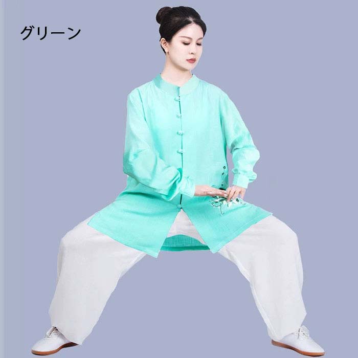 試合選択 朝練ウェア 武術 カンフー 服 太極拳 長ズボン シャツ 長袖 セットアップ 花刺繍 太極拳専門服 大人 レディース 演出服