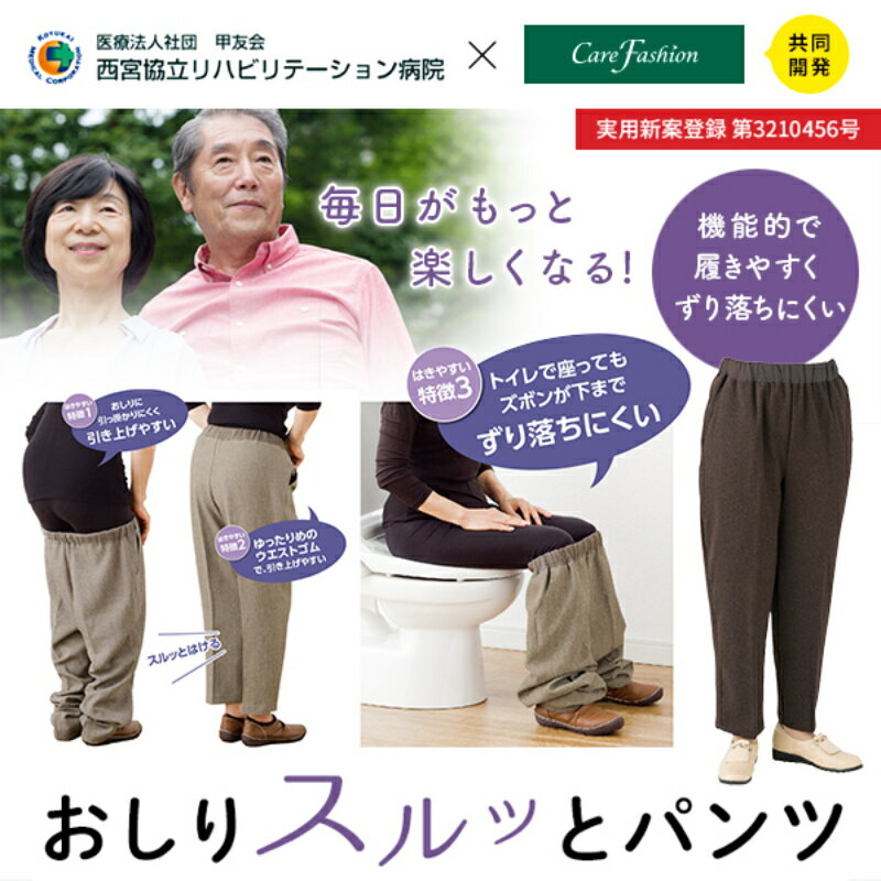 紳士用 おしりスルッとニットパンツ 履きやすいズボン シニアファッション シニア ズボン レディース 介護用ズボン 介護服 老人 高齢者 介護 男性用 おしりスルッと パンツ リハビリ 介護用品 ウエスト ゴム 高齢者 ケアファッション 敬老の日 父の日 [M L LL]