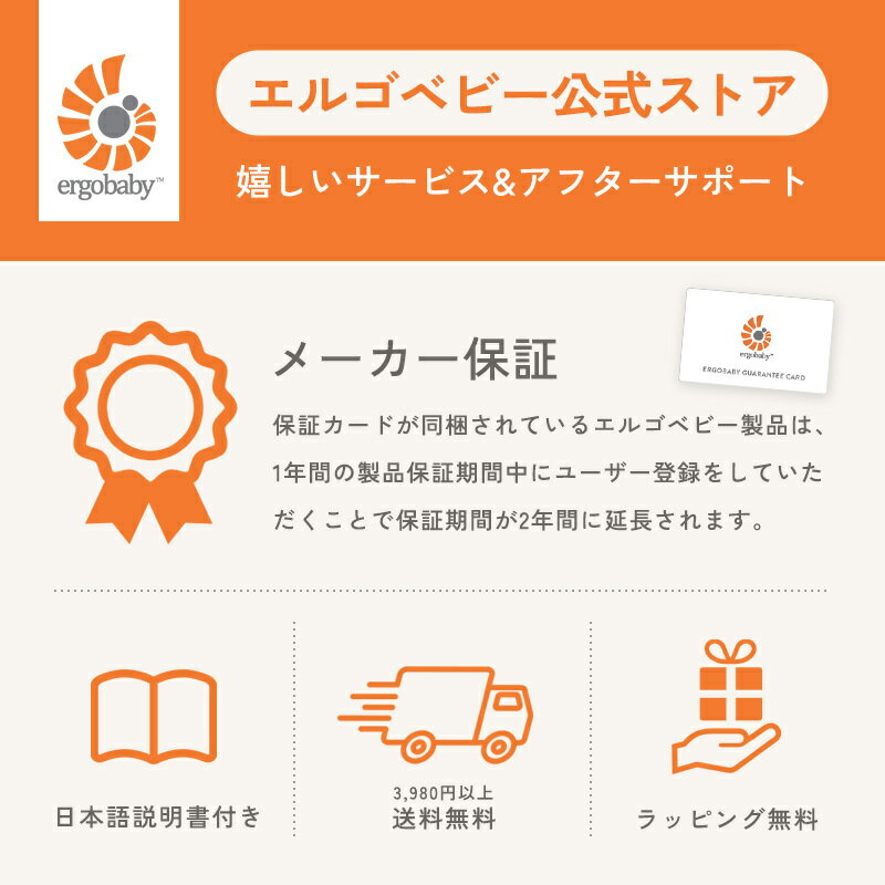 進化を続けて長年愛されるエルゴベビーの最新モデル、OMNI Breeze (オムニ ブリーズ)。 ○新生児から幼児(3.2kg~20kg)までの成長に合わせて調節ができ、前向き抱き・対面抱き、おんぶ、腰抱きの4通りの抱き方が可能。 ○柔らかい肌ざわりと優れた通気性を持つSoft Flexメッシュを、ムレが気になるお子さまの背中からお尻部分にかけて使用しているので、 抱っこひもの中の湿気や空気を素早く外に逃がします。 ○人間工学に基づいた設計で肩腰に負担をバランスよく分散。 体にフィットしやすいスリムな設計で、素手のだっこに近い、密着した抱っこができます。 〇反射板やサイドポケット、日よけ風よけのフードなど新しい便利機能が追加され、機能もさらに充実しました。 〇シートアジャスタースライダー:抱き方に合わせてシートを調整します。前向き抱きの場合はスライダーを内側へスライド、どの抱き方でも快適に抱っこできます。 〇シートアジャスタータブ:抱っこひものウエストベルトの裏側にある着脱テープでサイズ調節ができます。月齢や身長を目安にカラーガイドで3段階に調節が可能です。 ■対象月齢:0カ月(体重3.2kg、身長50.8cm以上)から体重20.4kgまで ■抱き方別対象月齢 対面抱き:0カ月から48カ月(体重20.4kg)まで 前向き抱き:5カ月から24カ月(体重13kg)まで 腰抱き:6カ月から48カ月(体重20.4kg)まで おんぶ:6カ月から48カ月(体重20.4kg)まで ■SGマーク制度適用対象月齢 対面抱き:1カ月から24カ月(体重13kg)まで 前向き抱き:5カ月から24カ月(体重13g)まで 腰抱き:6カ月から36カ月(体重15kg)まで おんぶ:6カ月から36カ月(体重15kg)まで ■サイズ:腰回り約132cmまで ■材質: べビーキャリア本体:ポリエステル100% ■原産国:ベトナム ■付属品:ベビーキャリア本体、ポーチ、保証カード、取扱説明書 ■お手入れ方法 洗濯機使用可能(ネット使用) ■使用上の注意点 ・着用時の摩擦、汗などにより色が移る場合があります。 ・取扱説明書に従い正しく使用してください。 ■備考 モニターの発色具合によって実際のものと色が異なる場合があります。 メーカー希望小売価格はメーカーサイトに基づいて掲載していますエルゴ オムニ ブリーズ クリームフラワーレース 抱っこ紐 新生児 Ergobaby OMNI Breeze エルゴベビー ブリーズ 日本正規品 2年保証 赤ちゃん ベビー 抱っこひも ベビーキャリア 出産祝い ギフト■商品説明 進化を続けて長年愛されるエルゴベビーの最新モデル、OMNI Breeze (オムニ ブリーズ) ・新生児から幼児(3.2kg~20kg)までの成長に合わせて調節ができ、前向き抱き・対面抱き、おんぶ、腰抱きの4通りの抱き方が可能。 ・柔らかい肌ざわりと優れた通気性を持つSoft Flexメッシュを、ムレが気になるお子さまの背中からお尻部分にかけて使用しているので、 抱っこひもの中の湿気や空気を素早く外に逃がします。 ・人間工学に基づいた設計で肩腰に負担をバランスよく分散。 体にフィットしやすいスリムな設計で、素手のだっこに近い、密着した抱っこができます。 ・反射板やサイドポケット、日よけ風よけのフードなど新しい便利機能が追加され、機能もさらに充実しました。 ・シートアジャスタースライダー:抱き方に合わせてシートを調整します。前向き抱きの場合はスライダーを内側へスライド、どの抱き方でも快適に抱っこできます。 ・シートアジャスタータブ:抱っこひものウエストベルトの裏側にある着脱テープでサイズ調節ができます。月齢や身長を目安にカラーガイドで3段階に調節が可能です。 ■対象 0カ月(体重3.2kg、身長50.8cm以上)から体重20.4kgまで ■抱き方別対象月例 対面抱き:0カ月から48カ月(体重20.4kg)まで 前向き抱き:5カ月から24カ月(体重13kg)まで 腰抱き:6カ月から48カ月(体重20.4kg)まで おんぶ:6カ月から48カ月(体重20.4kg)まで ■SGマーク制度適用対象月齢 対面抱き:1カ月から24カ月(体重13kg)まで 前向き抱き:5カ月から24カ月(体重13g)まで 腰抱き:6カ月から36カ月(体重15kg)まで おんぶ:6カ月から36カ月(体重15kg)まで ■サイズ 腰回り約132cmまで ■材質 べビーキャリア本体:ポリエステル100% ■付属品 ベビーキャリア本体、ポーチ、保証カード、取扱説明書 ■お手入れ方法 洗濯機使用可能(ネット使用) ■使用上の注意点 ・着用時の摩擦、汗などにより色が移る場合があります。 ・取扱説明書に従い正しく使用してください。 .