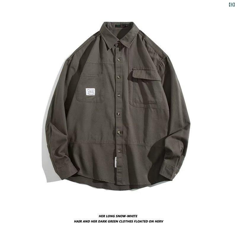 メンズ ファッション コーデ 男性用 春 長袖 シャツ コットン カジュアル ワークシャツ 秋 薄手 ジャケット トップ