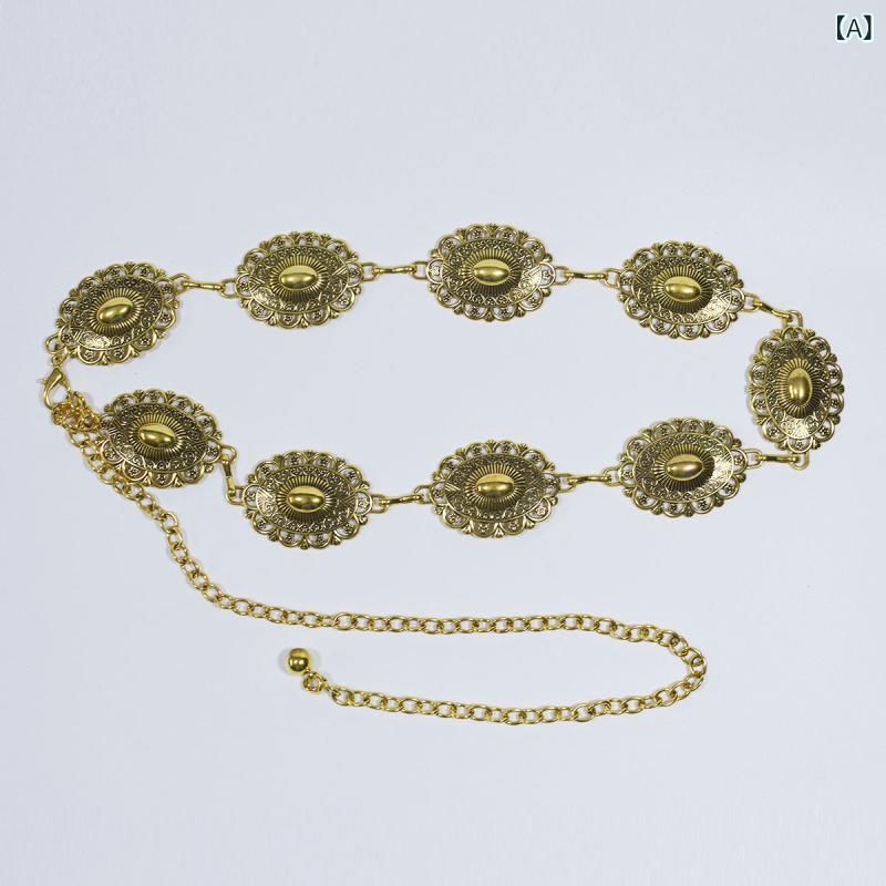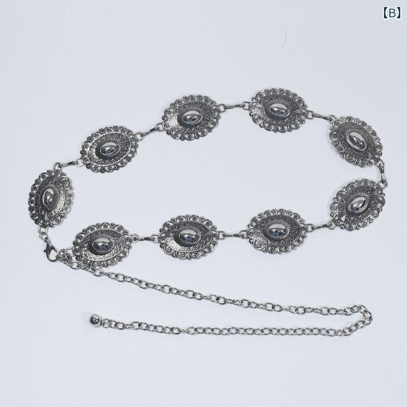 ウエストチェーン レディース 女性用 欧米風 レトロ 彫刻風 エスニック調 パンクスタイル 金属製 Y2Kファッション スカート ワンピース ドレス パーティー カジュアル ストリート 細身ベルト アクセサリー