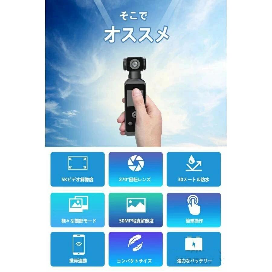[本日限定10%OFF!]レビュー限定64GBTFカード付】ビデオカメラ 小型 アクションカメラ 5K 4K 小型 WIFI対応 高画質 6軸手ブレ補正 カメラ デジカメ 水中カメラ 防水30M 270度回転レンズ 動画撮影 自転車 バイク 車載用 動画撮影 スタビライザー Vlog ポケットカメラ