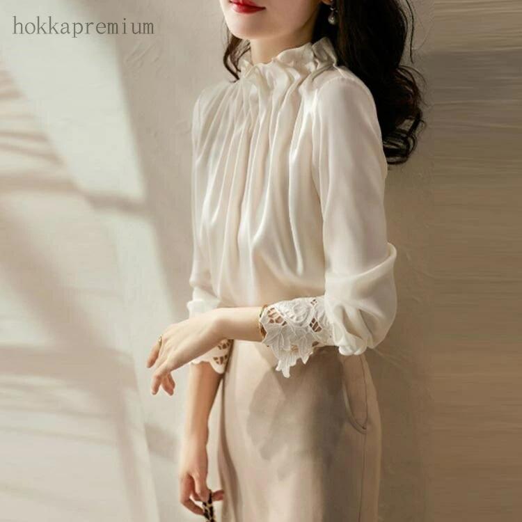 スタンドカラー ハイネック おしゃれ トップス フォーマル フリル襟 ギャザー セレモニー 長袖 シャツ タック