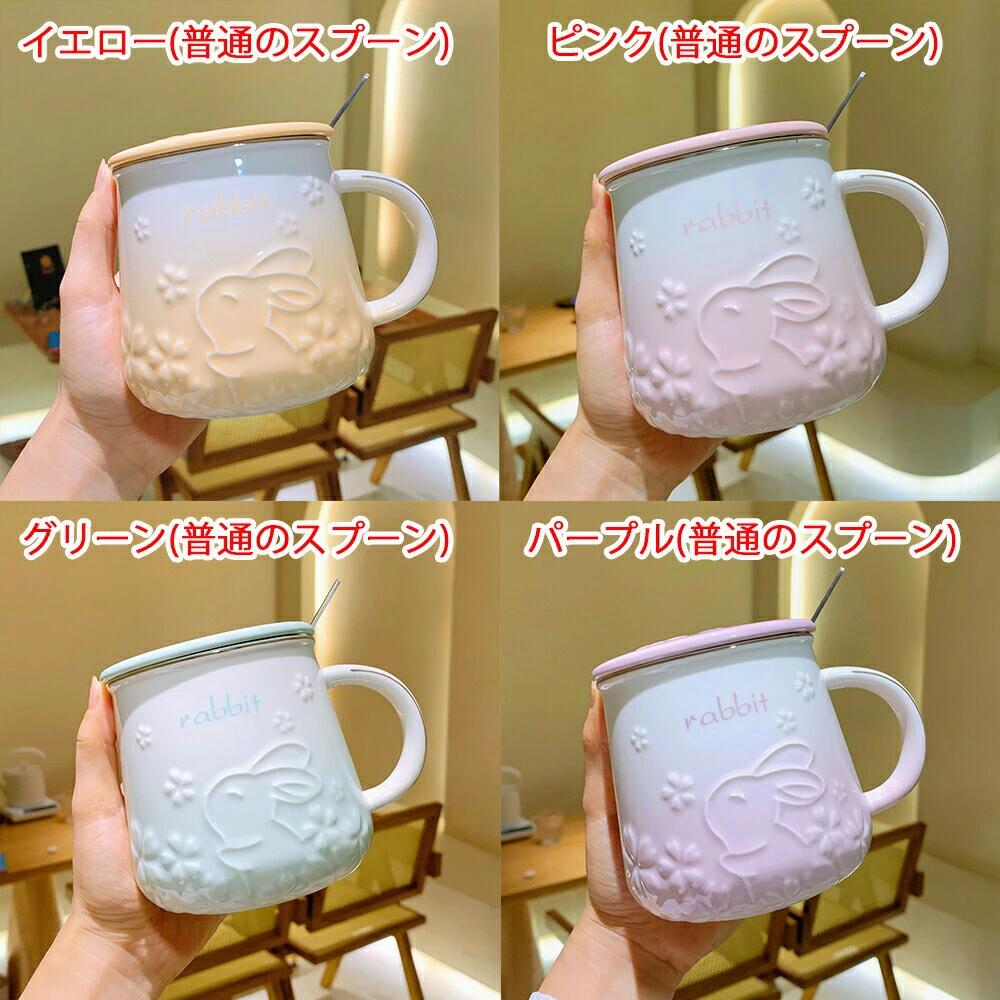 女の子 電子レンジ/冷蔵庫/食洗機対応 おしゃれ キッチン グラデーション スプーン付き カフェマグカップ 400ml クリスマス 陶器 コップ 桜(さくら)ウサギ柄 マグカップ 女性 フタ付き ギフト コーヒーカップ プレゼント 大容量 誕生日 かわいい 磁器 ティーカップ 夢幻