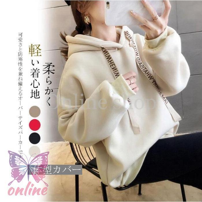 秋 着痩せ 韓国風 着回 春 トップス レディース 長袖 無地 レディースファッション 裏起毛 大きいサイズ パーカー 冬 フードパーカー