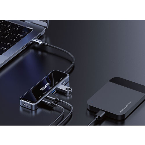 入力端子:1ポート USB-C パススルー最大100W PD入力出力端子:1ポート USB-C パススルー最大出力 85W (100W PD充電器使用時)USB-C:1ポート (USB3.0/USB3.1Gen1/USB3.2 Gen1)USB-A:3ポート (USB3.0/USB3.1Gen1/USB3.2 Gen1)映像出力:1ポート (4K/30Hz、Full-HD/60Hz)筐体素材:アルミニウム/プラスティック(本体)使用温度範囲:使用時温度/0℃〜35℃サイズ:W117×D35×H13mm(本体のみ/ケーブル含まず)重量:約69gケーブル長:約16.5cm準拠規格:RoHS指令対応対応OS/対応デバイス:・Windows 11 /10・macOS X10.8以降・Linux・MacBook Pro/Air・iPad Pro・Chromebook・Androidなど付属品:キャリングケース生産国:中国保証期間:1年間