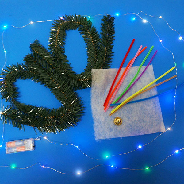 イルミネーションライト付き 手作りクリスマスリース 【商品番号】No.11283 1個No.11284 10個 【商品説明】クリスマスのイベントや子供会の工作に。イルミネーション付きのクリスマスリースが作れます。 【セット内容】 もみの木モール(約1m)×2、モール(約φ0.6×24cm)8色組×1、ベル×1、綿×1、イルミネーションライト(30ライト)×1、単三電池×2 【大きさ】 約25cm×25cm 【素材】鉄、PVC、ポリエステル、アクリル、PS、銅線