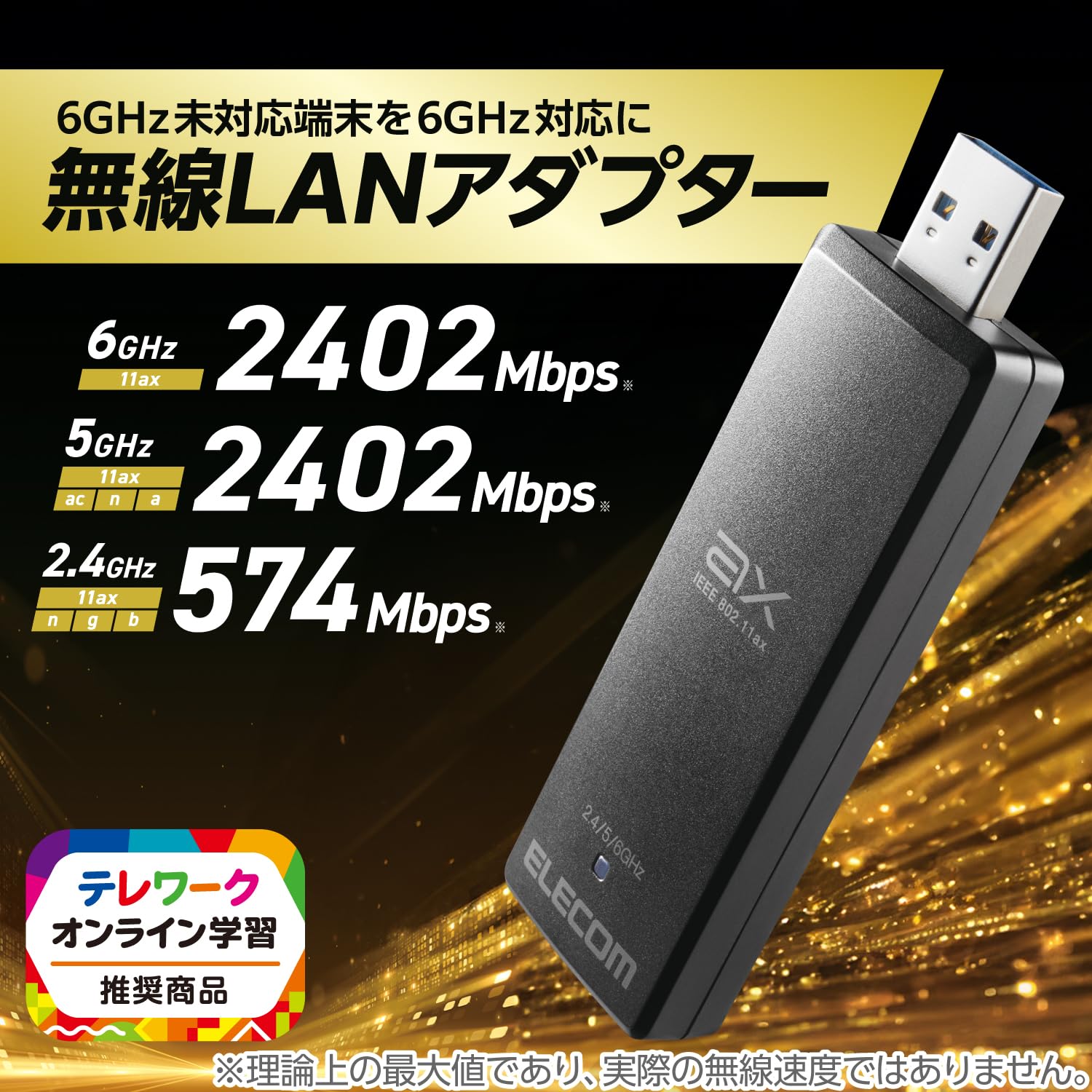 エレコム 無線LANアダプタ Wi-Fi 6E 2402+2402+574 Mbps USB3.0 対応 WDC-XE2402TU3-B
