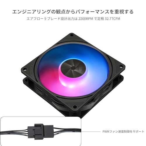 P9-S・Style:P9-S・【高性能冷却ファン】マザーボードの温度に応じて速度を決定できる4PIN PWMファンケーブルインターフェースを介したマザーボードの自動速度制御、最高速度2200RPM。・【サイレントファンの寸法】 サイズ:92 * 92 * 25mm、速度:2200RPM ± 10%、ノイズ?23.85dBA コネクタ:4ピンPWM、風圧:1.98mm H2O、空気流量:32.77CFM(MAX)、冷却性能を向上させるためのより高い空気流量。・【優れたARGB光効率】高輝度LED噴霧されたargbファンブレードは、光を効果的に反射し、argb照明効果を柔らかくし、タワークーラー、ダウンプレッシャーラジエーター、およびシャーシとより完全に一致させることができます。ARGBライトエフェクトの複数のモードをサポートし、調整された照明エフェクトのために、マザーボードの3PIN ARGBライトポートを介して色を接続して管理できます。・【独自のサーマルライト形状】シンプルなラインデザインとクーラーファンの周りに埋め込まれたグラフィック構造は、マットなテクスチャ素