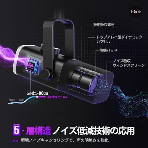 FIFINE XLR/USB ゲーミングマイクセット ストリーミング ポッドキャスト用 ダイナミックマイク PCマイク ブームアームスタンド付き