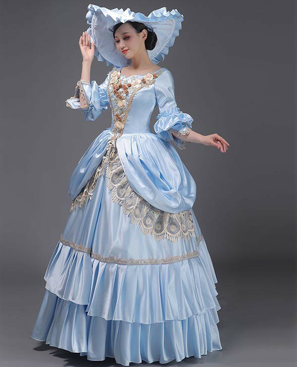 中世 貴婦人ドレス ステージ 衣装 中世ドレス ヨーロッパ 貴族 王族服 ジュリエット カラードレス 演出 現代劇演出 ヨーロッパ風 演出 パーティードレス 青 シャンパン色 ec171t2t2t2