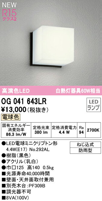 【当店厳選商品ポイントUP中】エクステリア 屋外 照明 ライト オーデリックODELIC ポーチライト ブラック OG041643LR ブラケットライト 壁面・天井面兼用・玄関灯 コンパクトなキューブデザイン スクエア 電球色