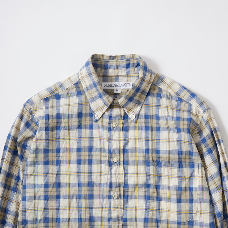 INDIVIDUALIZED SHIRTS (インディビジュアライズドシャツ) L/S BD PULLOVER CLASSIC FIT CHECK SHIRT - BLUE プルオーバーシャツ メンズ