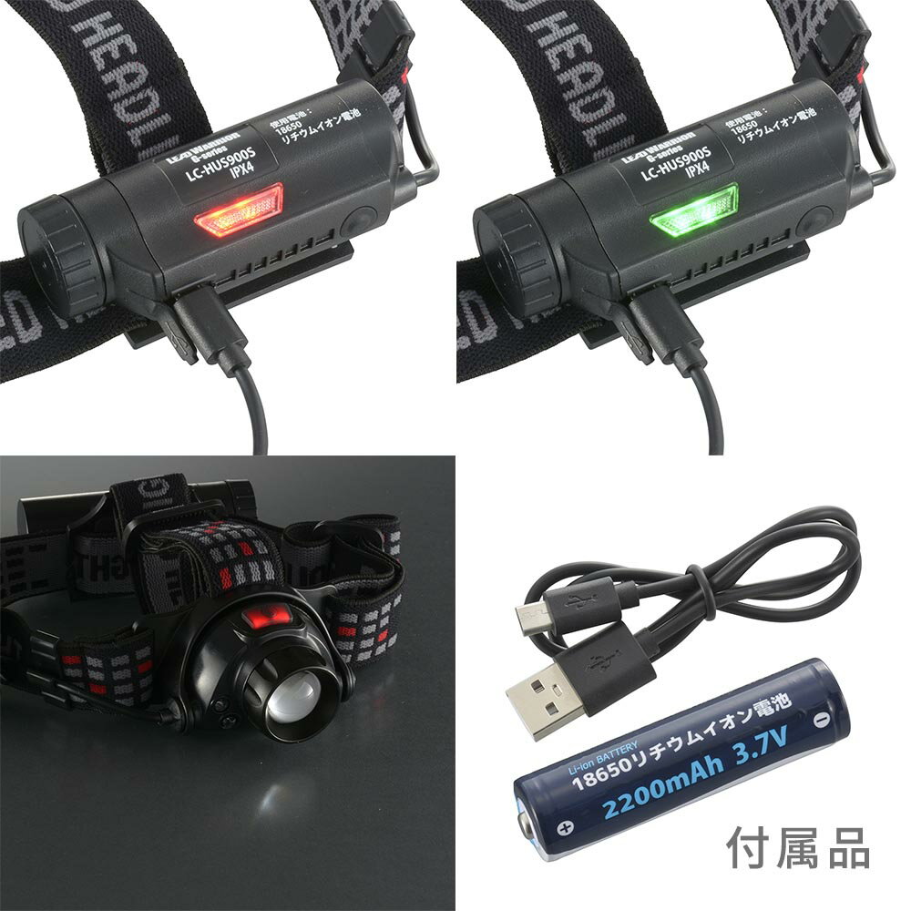LEDヘッドライト USB充電式 リードウォーリア 900ルーメン|LC-HUS900S-K 08-1369|OHM(オーム電機)