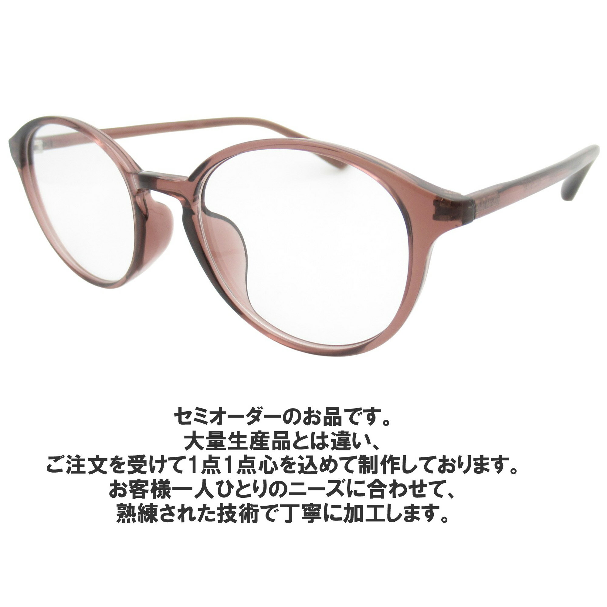 ブランド セミオーダーシニアグラス アイマックスオリジナル(老眼鏡) 品番 TR1161 49サイズ 特徴 商品説明 老眼鏡 - セミオーダー TR90フレーム 視力の変化に伴うお悩みを解決するために、熟練された技術で丁寧に加工された老眼鏡をご紹介します。このセミオーダーの老眼鏡は、軽量で柔軟性のあるTR90素材を使用し、どんなシーンでも快適に装うことができます。 セミオーダー対応: 大量生産品とは違い、ご注文を受けて1点1点心を込めて制作しております。お客様一人ひとりのニーズに合わせて、熟練された技術で丁寧に加工します。快適な装着感を追求し、長時間の使用でも疲れにくい設計です。 軽量なTR90フレーム: TR90素材のフレームが、軽量で柔軟性があり、快適な装着感を提供します。どんなファッションにも合わせやすく、日常使いにやオフィスに最適です。 UVカット機能対応: 限りなく透明に近いクリアレンズをセットします。 エレガントなデザイン: 年齢を問わず、多年齢層の方々にご愛用いただけるデザインです。高齢の方にも使いやすく、視力補正とおしゃれを両立させます。 この老眼鏡は、視力のサポートだけでなく、ファッションアイテムとしても優れた選択肢です。ぜひ、この機会にお試しください。 一般的に販売しているメガネフレームは通常、デモレンズ(ダミーレンズ)がセットされております。デモレンズは型崩れ防止用となりますので、そのままでは使えません。当店では、デモレンズを外して、メガネやサングラス用のレンズへ入れ替えてお届けしますので届いたらすぐにお使いいただけます。 ご不明な点がございましたらお気軽にお問い合わせくださいませ。 サイズ ■レンズ:49ミリ ■ブリッジ:19ミリ ■テンプル:140ミリ ■フレーム全幅:135ミリ ■高さ:45ミリ カラー ■フレーム:ライトブラウン・グレージュ・ブラック(TR90) ■レンズ:UVカットレンズ モニターや撮影状況などにより写真と実物の色合いが異なる場合がございます。 ケース・クロス等、付属品は入荷時期により色や形状が異なる場合がございます。 ギフト対応当店のメガネフレームは度付き・度なし対応のレンズ付きセット価格で販売しています。 たくさんの方から 「追加料金のかからないレンズはUVカット付きですか?」 との お問い合わせが多数ございました。 もっと お客様に、安心、安全、快適なメガネをお届けしたい・・・。 アイマックスのメガネは UVカット(UV400)&超撥水コート付き 反射を抑えたマルチコートレンズをセットしてお届けいたします。 有害な紫外線をほぼ100%カットする機能に加え、 汚れ防止の超撥水コート付きでお手入れしやすくなりました。 さらに、反射を抑えたマルチコーティングで明るくクリアな視界で快適。 度付きメガネはもちろんのこと、ダテメガネとしてお使いいただく場合も、 UVカット&超撥水コート付ハードマルチコートの レンズを使用してお作りします。 UVカット(UV400)って?? ※目に有害とされる紫外線の光(波長400ナノメートルまで)を ほぼ100%カットするUV400レンズを採用。 (光の波長400ナノメートルまでの紫外線UVAとUVB、 地球上に降り注ぐ有害な紫外線のほぼ100%をカットします。 超撥水コートって?? レンズ表面に撥水コートを施すことにより、滑りをよくしてキズがつきにくく 汚れを拭き取りやすくしたコーティングです。 また、レンズコーティングは 光の反射を抑え、明るくクリアに見える ハードマルチコートレンズを採用しております。 ダテメガネはプレゼントにもぴったり!!無料ラッピングをご希望の方は、お気軽にお申し付けください。 追加料金なしレンズの詳しい説明はこちらをご覧ください