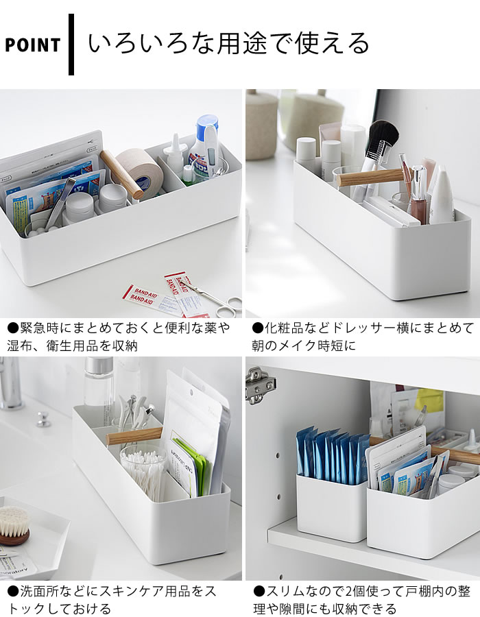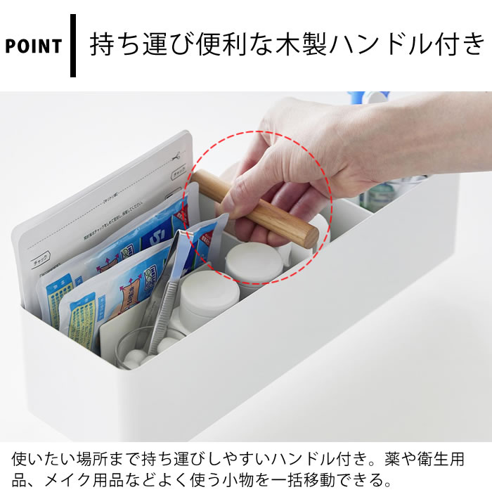収納ボックス おしゃれ ハンドル付きスリム収納ボックス トスカ tosca 救急箱 ツールボックス 小物収納 ハンドル 化粧 トスカシリーズ 持ち運び メイク 山崎実業 yamazaki ヤマジツ スリム シンプル マスク 小物ケース 1856 木目 薬