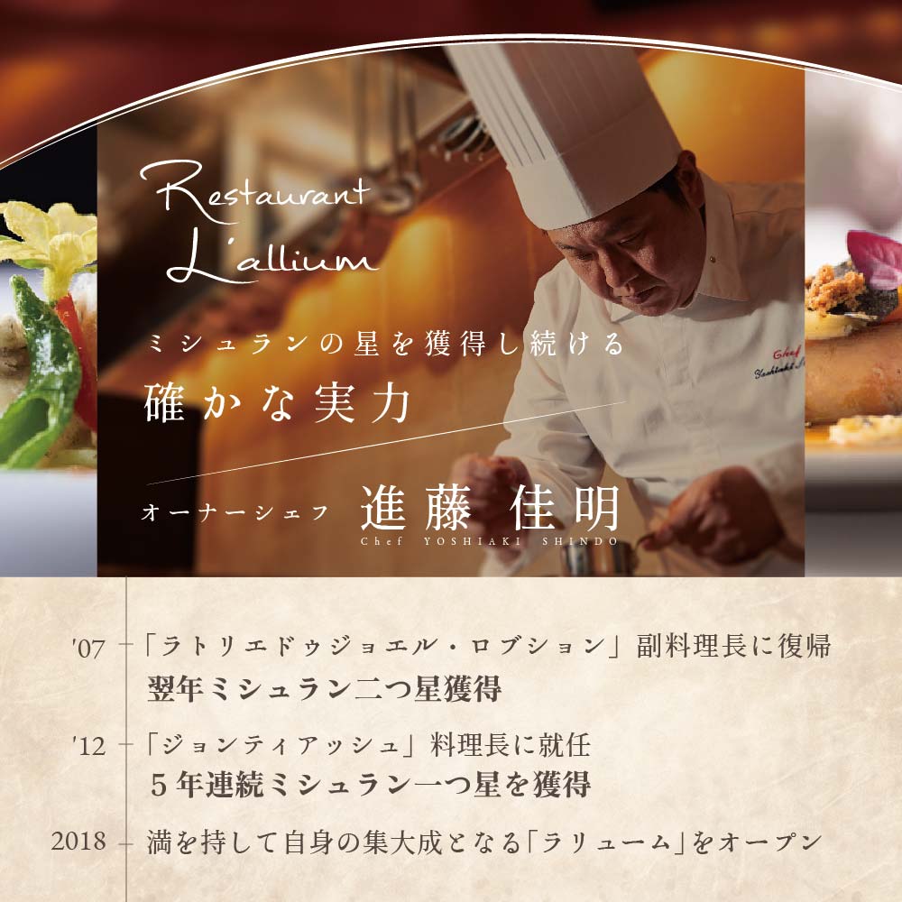 お礼の品詳細 別海町の特産品を使用したフルコースお食事券をお届けします。 ※本お食事券はランチ・ディナーどちらの時間帯でもご利用いただけます。 ※1名様でのご利用も可能です。但しカウンター席へのご案内となりますので予めご了承ください。 ※お子様のご利用は3歳以上からとなります。ただし小学生以下のお客様は個室(+¥5,500)のみのご利用となります。 本コースは、進藤シェフ自らが別海町の一次生産者の現場を訪れ目利きした厳選食材をフルに活用した特別コースです。 名称【ふるさと納税】【白金台 フレンチ】ラリューム 地下に広がる開放的で重厚な空間で食す「別海町コース」お食事券 選べる (別海町SPECIALコース / 別海町コース) (1名様 / 2名様) 内容【白金台 フレンチ】ラリューム 歴史ある空間と確かな技「別海町SPECIALコース」食事券 & 地下に広がる開放的で重厚な空間で食す「別海町コース」食事券 ▼ご希望のコースをお選びください ・別海町SPECIALコース ・別海町コース ▼ご希望の人数をお選びください ・1名様 ・2名様 原産地北海道別海町 サービス提供地東京都港区 提供サービスご利用店舗:Restaurant Lallium(レストラン ラリューム) ▼SPECIALコース ・アミューズ・ブーシュ ・北海道別海町産 ホタテ貝と蕪のカルパッチョ 黄柚子香ヴィネグレットで ・フランス産 鴨のフォアグラのプランシャ焼き 金時草のソテーに乗せ 金柑のコンポートとオレンジのエッセンスで ・北海道産雲子のムニエル 加賀蓮根のソテーとソースブールノワゼット トリュフの香りで ・山口県産 クエをプランシャでふっくらと焼きあげ パセリを練りこんだカネカ発酵バターのソースで ・北海道産 蝦夷鹿のロースト 赤桃と赤ワインのソースと旬の野菜をあしらって ・別海町ミルクのブランマンジェと苺 別海町ミルクの濃厚アイスとアーモンドのチュイルを添えて ・カフェと小菓子 ※食材の仕入れ状況や時期によってお料理は変わります。 ▼別海町コース ・アミューズ・ブーシュ ・北海道別海町産 ホタテ貝と蕪のカルパッチョ 黄柚子香ヴィネグレットで ・フランス産 鴨のフォアグラのプランシャ焼き 金時草のソテーに乗せ 金柑のコンポートとオレンジのエッセンスで ・山口県産 クエをプランシャでふっくらと焼きあげ パセリを練りこんだカネカ発酵バターのソースで ・北海道産 蝦夷鹿のロースト 赤桃と赤ワインのソースと旬の野菜をあしらって ・別海町ミルクのブランマンジェと苺 別海町ミルクの濃厚アイスとアーモンドのチュイルを添えて ・カフェと小菓子 ※食材の仕入れ状況や時期によってお料理は変わります。 【お飲み物ほかその他のメニュー】 本コース以外のメニューは、別途店舗での精算となります。 シェフ進藤 佳明(しんどう・よしあき) 神奈川県出身。'97年「修廣樹」を経て、'03年「ラトリエドゥジョエル・ロブション」にてロブション氏のエスプリを受継ぐ。その後'06年「ボン・ピナール」を経て、'07年「ラトリエドゥジョエル・ロブション」副料理長に復帰。翌年ミシュラン二つ星獲得。'12年「ジョンティアッシュ」料理長に就任すると、5年連続ミシュラン一つ星を獲得。2018年、満を持して独立。自身の集大成となる「ラリューム」をオープン。 営業時間Lunch/12:00~14:30(L.O.13:00) Dinner/17:30~22:30(L.O.21:00) ※()内の時間はラストオーダーの時間です。 定休日月曜日を中心に月8回 アクセス東京都港区 最寄り駅:白金台駅 ※徒歩4分/車3分 使用期限使用期限:発行日から1年 ※但し12月1日~3月31日の期間はご利用不可 提供事業者株式会社 Country Crossing(カントリークロッシング) 注意事項 ※ご入金確認後、ご登録のメールアドレス宛てにお食事券を配信いたします。 ※紙のチケットの発行・発送はいたしません。 ※贈答品(寄付者様と異なる方に配送)の場合には贈答先のご住所にお食事券をレターパックにて送付いたします。 ※お食事券にサービス提供店舗の予約専用のお電話番号又はQRを記載しておりますので、そちらより店舗へ直接ご予約ください。 ※年末年始の店休日のご確認は店舗HPなどでご確認のうえご予約をお願いします。 ※ご予約の状況により、ご希望に添えない場合がございます。満席、食材の仕入れの関係上、ご利用いただけない日時がございます。 ※お食事券は、必ずご持参ください。お食事券がない場合は、所定の料金をご請求させていただきますので、ご注意ください。 ※お食事券は、期限までに必ずご利用ください。期限を過ぎたお食事券は利用いただけません。 ※お食事券の払い戻しなどはできません。 ※お連れ様が寄付者でない場合は、お連れ様は本コース寄付者様のお食事内容と同じとなります。 ※ご予約の変更は7日前までにお願いいたします。7日前を過ぎての変更、及びキャンセルはチケットの失効となりますのでご注意ください。 ※ドレスコードなどのその他注意事項は、HPの記載事項に準じます。 ※画像はイメージです。 ・ふるさと納税よくある質問はこちら ・寄附