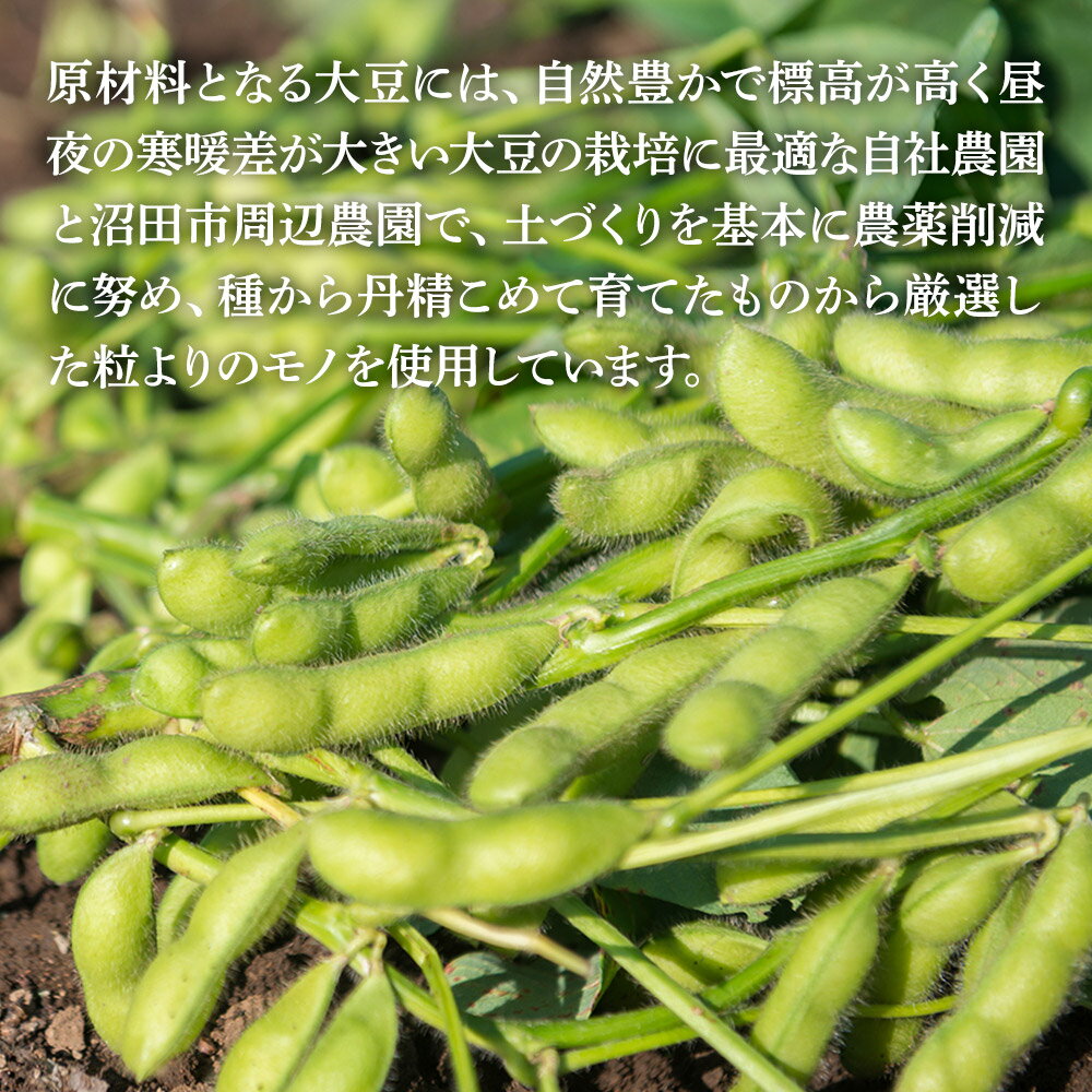 朝晩の寒暖差が激しい群馬県沼田市で、自然の力だけで仕込まれた味噌。厳しい環境下で発酵・熟成させ、大豆の美味しさを感じられる味噌です。 毎日のお味噌汁、野菜スティックにはもちろん、焼きおにぎりなど加熱することで味噌の香りが引き立ちます。 カラフル大豆4種の味噌を、お好みの食べ方でどうぞお楽しみください。 返礼品詳細 名称 味噌 内容量 茶豆味噌600g×1、給食の味噌600g×1、赤大豆味噌600g×1、黒豆味噌600g×1 原材料名 【茶豆味噌】茶豆大豆(国産)、大豆、麹(米麹、麦麹)、塩 【給食の味噌】大豆(国産)、麹(米麹、麦麹)、塩 【赤大豆味噌】赤大豆(国産)、大豆、麹(米麹、麦麹)、塩 【黒豆味噌】黒大豆(国産)、大豆、麹(米麹、麦麹)、塩 賞味期限 発送日から1年間 保存方法 冷蔵 注意事項 ※画像はイメージです。 ※無添加にこだわっているため、酵母・乳酸菌を生きたままパック詰めしております。ご自宅では、冷蔵庫または冷凍庫での保存をお願いいたします。 ※提供元事業者からの返礼品情報を元に、編纂・制作の上掲載しております。 ※提供元事業者の規格変更などに伴い、予告なく掲載情報が変更となる場合がございます。 ※ワンストップ特例申請の書類は一律で寄附金受領証明書に同封されます。 ※ふるさと納税(寄附申込み)のキャンセル、返礼品の変更・返品はお受けできません。あらかじめご了承ください。 提供元 奥利根自然菜園株式会社 アレルギー 大豆 アレルギー補足 大麦 配送温度帯 冷蔵 配送不可地域 離島 地場産品に該当する理由 本返礼品は、地場産品基準に基づく「当該工程を経て完成した当該返礼品等の重量や付加価値のうち、半分を一定程度以上上回る割合が当該工程によるものであること」を確認しています。詳細は、沼田市ホームページをご覧ください。(告示第5条第3号に該当) ・寄附申込みのキャンセル、返礼品の変更・返品はできません。あらかじめご了承ください ・ふるさと納税よくある質問はこちら