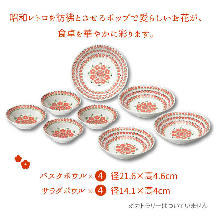 【ふるさと納税】【美濃焼】メリーゴーランド パスタ・サラダボウル 食器 8点 セット 赤色【株式会社カネセ】≪土岐市≫ 食器 皿 鉢 [MCA012]