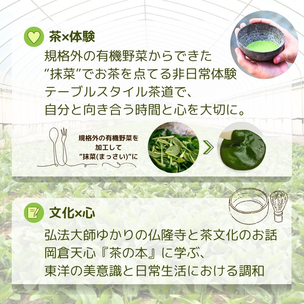 【ふるさと納税】有機農業 を知って五感で感じる SDGs テーブル スタイル 茶道体験 20名様迄/ Nara Green 抹菜 オーガニック ビレッジ 薬草 茶の本 農家 有機野菜 無農薬 関西 チケット 山口農園 奈良県 宇陀市