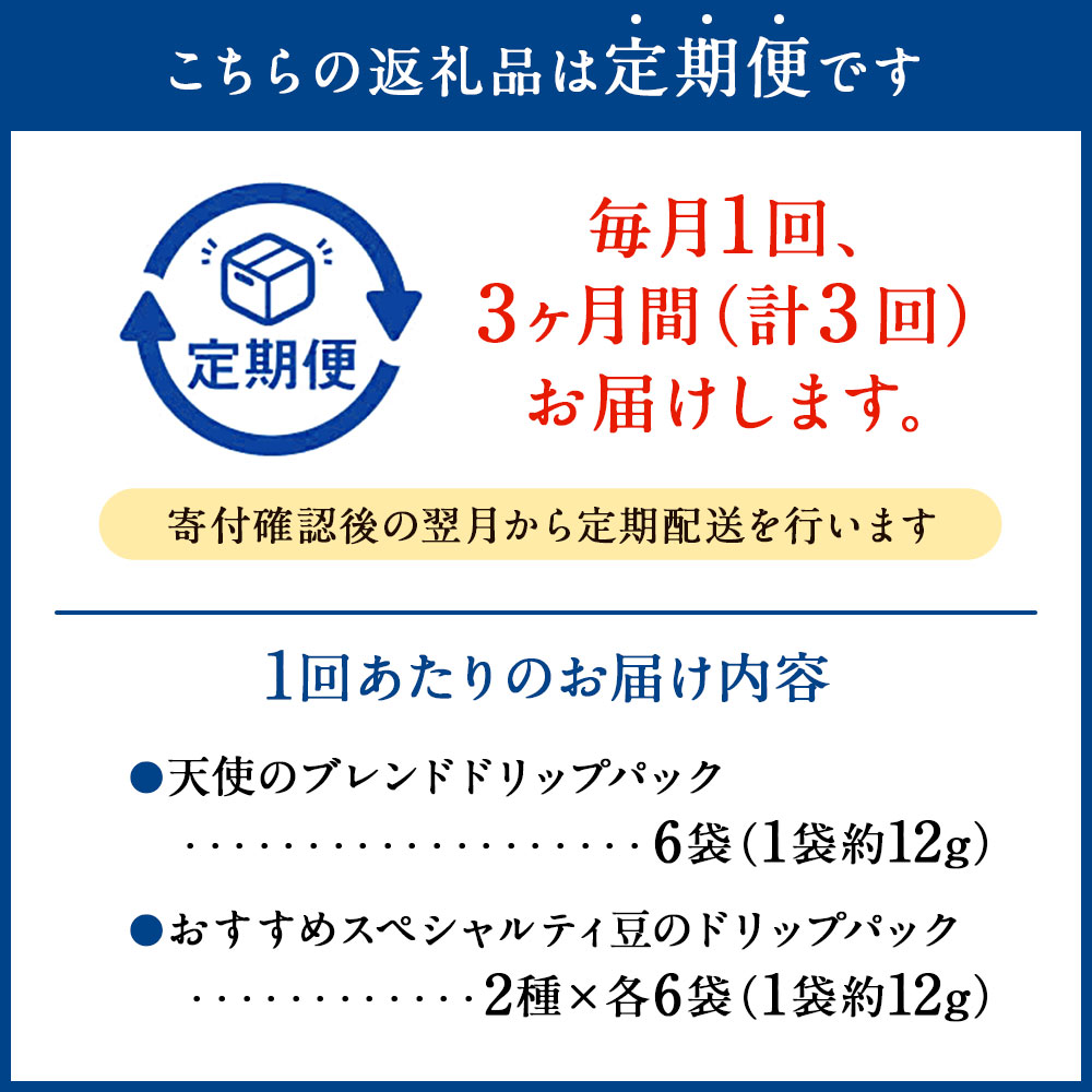 【ふるさと納税】【定期便3回】自家焙煎後すぐパック詰め『香る新鮮ドリップパック』 3種 各6袋 18袋×3回 合計54袋 コーヒー 珈琲 ドリップ パック 福岡県 苅田町 送料無料