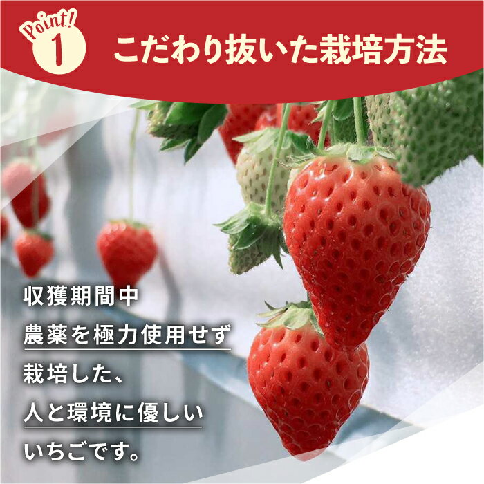 佐賀県江北町の美しい里山に囲まれた「花祭いちごの谷」で、子どもから大人まで、みんなが笑顔になるいちご狩り体験はいかがですか? 「いちごを美味しく新鮮に、安心して?食べられるのが一番の贅沢。」 そう考えるいちごの谷では、栽培に二つのこだわりがあります。 ・いちごは品種に一番合った方法で育てる ・人にも自然にもやさしい方法で育てる いちごは品種ごとにレーン分けし、水・光・栄養の量まで変えています。 また、できるだけ農薬を使用しない栽培にも取り組んでいます。 豊かな竹林・きれいな山水・程よい陽の光という里山ならではの資源。 そして、周りのミツバチと、ハウスを満たす天然のハーブエキスに守られていることが、無農薬を目指せる理由です。 花祭いちごの谷園長の唐島さんは初めて農園の風景を目にした時、その美しさに感動しました。 その最初の感動を大事にし、皆様にも同じ気持ちを感じていただけるような農園作りを目指しています。 季節の草花が咲き誇る農園で、心癒されるいちご狩りをご体験ください! ■ご利用までの流れ (1)本サイトより申し込みください。(申込期限:2024年3月上旬) (2)2024年1月中旬頃よりチケットを送付致します。 (3)チケット到着後、当チケットに記載されている電話番号に電話でご予約ください。予約時に必ず「ふるさと納税のチケットを利用」とお伝えください。チケットは、2024年3月〜5月のいちご狩り体験にご利用いただけます。(予約期限:ご希望日の2週間前) ■注意事項 ・生育状況によっては、体験期間がGWより早まる恐れがあります。 ・本お礼品のいちご狩り体験チケットは、小学生以上の方にご使用いただけます。 ・当日は必ずチケットをご持参ください。忘れた場合、ご入場をお断りする場合がございます。 ・土日祝は特に予約が込み合いますので、お早目のご予約をお願いいたします。 いちご狩り体験チケット 4枚 【消費期限】2024年3月〜5月のいちご狩り開催期間中にご利用いただけます。 #/体験/チケット/佐賀県江北町の美しい里山に囲まれた「花祭いちごの谷」で、子どもから大人まで、みんなが笑顔になるいちご狩り体験はいかがですか? 「いちごを美味しく新鮮に、安心して?食べられるのが一番の贅沢。」 そう考えるいちごの谷では、栽培に二つのこだわりがあります。 ・いちごは品種に一番合った方法で育てる ・人にも自然にもやさしい方法で育てる いちごは品種ごとにレーン分けし、水・光・栄養の量まで変えています。 また、できるだけ農薬を使用しない栽培にも取り組んでいます。 豊かな竹林・きれいな山水・程よい陽の光という里山ならではの資源。 そして、周りのミツバチと、ハウスを満たす天然のハーブエキスに守られていることが、無農薬を目指せる理由です。 花祭いちごの谷園長の唐島さんは初めて農園の風景を目にした時、その美しさに感動しました。 その最初の感動を大事にし、皆様にも同じ気持ちを感じていただけるような農園作りを目指しています。 季節の草花が咲き誇る農園で、心癒されるいちご狩りをご体験ください! ■ご利用までの流れ (1)本サイトより申し込みください。(申込期限:2026年3月上旬) (2)2026年1月中旬頃よりチケットを送付致します。 (3)チケット到着後、当チケットに記載されている電話番号に電話でご予約ください。予約時に必ず「ふるさと納税のチケットを利用」とお伝えください。チケットは、2026年3月〜5月のいちご狩り体験にご利用いただけます。(予約期限:ご希望日の2週間前) ■注意事項 ・生育状況によっては、体験期間がGWより早まる恐れがあります。 ・本お礼品のいちご狩り体験チケットは、小学生以上の方にご使用いただけます。 ・当日は必ずチケットをご持参ください。忘れた場合、ご入場をお断りする場合がございます。 ・土日祝は特に予約が込み合いますので、お早目のご予約をお願いいたします。 商品説明 名称いちご狩り体験 チケット 4枚 内容量いちご狩り体験チケット 4枚 消費期限2026年3月〜5月のいちご狩り開催期間中にご利用いただけます。 配送方法常温 配送期日2026年1月中旬頃から順次発送 提供事業者花祭果実 #/体験/チケット/