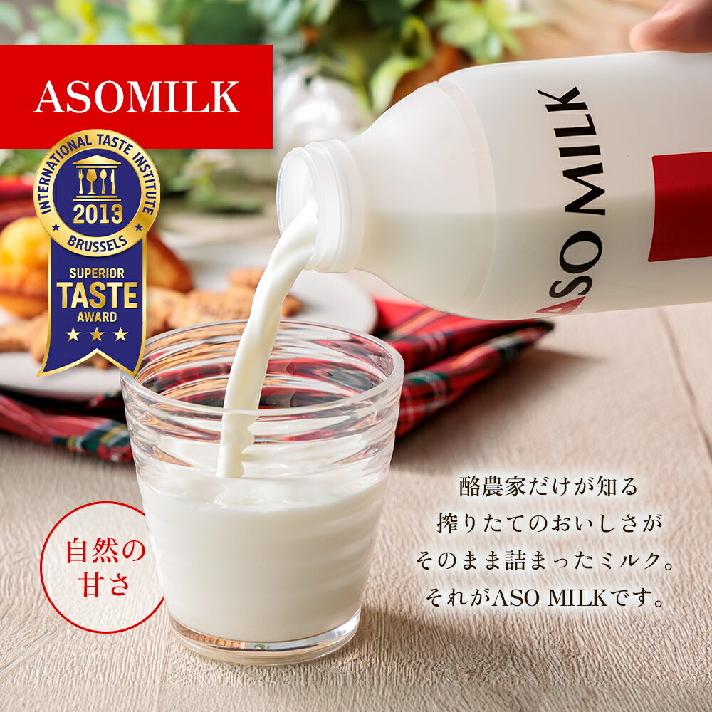 国際味覚審査機構で最高峰の三ツ星をW受賞した「ASOMILK」と「のむヨーグルト」を毎月お届けする定期便12ヶ月コース! ご家族みんなで楽しめるように、小瓶にして毎月200mlを各4本ずつお届けします。 高級寝台列車の朝食にも使用された、牛乳本来の甘さが楽しめる逸品。使いやすい200mlプラボトルを小分けでお届け! 「ASOMILK」は、搾りたてなので牛乳に臭みがなく自然な甘さが際立つ美味しさを味わえます。高級寝台列車の朝食にも使用された、牛乳本来の甘さが楽しめる逸品です。63度30分の低温殺菌を行うことで、風味を損なうことなく、乳酸菌や酵母が生きたままお手元に届きます。 牛の生育に併せて牧草を選ぶなど、餌にこだわって育てた牛の搾りたてのミルクをすぐに低温殺菌した新鮮牛乳です。 「のむヨーグルト」は、「牧場手作りだからこそ余計な物は入れたくない」そんな思いで造られた、日本でも珍しい牛乳と砂糖だけで発酵させた飲むヨーグルト。阿蘇の贈り物の定番です。搾りたての牛乳と洗双糖(甘さ控えめの砂糖)のみでじっくりと発酵・熟成。長く熟成期間を置くことでまろやかさが増ししっかりとした味わいが生まれます。 この牛乳と、のむヨーグルトを小瓶にいれて、毎月ご自宅へ工場から直送いたします。 ASOMILK(200ml)×4本 のむヨーグルト(200ml)×4本を12ヶ月お届け! ※約1か月に1回のペースで発送いたします。 日本で初めて世界味覚機構で3ツ星を受賞した最高傑作。完全無添加の安心安全ででしかできない牧場ならではの逸品をぜひご賞味ください。 2011 pentawards 金賞を受賞!! 2012 国際味覚審査機構 二ツ星受賞!! 2013 国際味覚審査機構 三ツ星受賞!! 国際味覚審査機構で最高峰の三ツ星を受賞 「ASO MILK」並びに「のむヨーグルト」が、ベルギー王国の首都ブリュッセルにある国際味覚審査機構(International Taste & Quality Institute)にて行われる食品コンクールで「Superior Taste Award」(優秀味覚賞)三ツ星をダブル受賞しました。 同賞は飲料、食品のミシュランガイドと称され日本国内で牛乳、ドリンクタイプヨーグルトともに星のダブル受賞は、阿部牧場のみです。 人間と同じように、牛たちが口にするものも安全に 牛たちが飲む水は阿蘇の大地をゆっくりとろ過された天然の地下水。エサは大草原で育まれた、自家製の牧草。 牧草だけでなく飼料用の稲の生産にも長年取り組んでいます。 ここまでこだわるのは、人間と同じように牛たちにも安心で安全な食事をしてほしいと思うからです。 ふるさと納税を通じて、阿部牧場の恵まれた自然環境で育まれた新鮮な牛乳がたくさんの方々に支持されています。 ふるさと納税の仕組みを利用することで、阿部牧場の美味しい牛乳を手に入れつつ、地域への支援も実現できます。 阿部牧場の牛乳は濃厚で風味豊かであり、ふるさと納税を通してその味わいを楽しむことができます。 熊本県阿蘇市の阿部牧場の牛乳は、豊かな自然の中で育った牛から搾りたての濃厚な味わいが特徴です。 ふるさと納税制度を利用すれば、この上質な牛乳を自宅で楽しめます。阿部牧場の牛乳を使ったヨーグルトやチーズなどの乳製品もおすすめです。 ふるさと納税を通じて、阿部牧場を応援し、美味しい牛乳を味わってみませんか? 商品説明 名称牛乳とのむヨーグルト各800ml定期便12ヶ月 原材料名 ASOMILK…生乳 のむヨーグルト…生乳、砂糖 原産地熊本県阿蘇市 アレルギー表示 乳成分 栄養成分 牛乳…100ml当たり エネルギー67kcal、たんぱく質3.2g、脂質3.8g、炭水化物4.8g、食塩相当量0.1gのむヨーグルト…100ml当たり エネルギー88kcal、質3.2g、脂質3.7g、炭水化物11.2g、食塩相当量0.1g 内容量 ASOMILK 200ml×4本 のむヨーグルト 200ml×4本 計8本を毎月お届け(12ヶ月) 賞味期限 牛乳…製造日より8日 のむヨーグルト…製造日より15日 保存方法冷蔵(10℃以下で保存)製造者 阿部牧場 熊本県阿蘇市三久保47-1 ・ふるさと納税よくある質問は こちら ・寄附申込みのキャンセル、返礼品の変更・返品はできません。あらかじめご了承ください。 【阿部牧場の濃厚で美味しい牛乳を是非お楽しみください!】 阿部牧場 牛乳 ふるさと納税 熊本 阿蘇 国産 グルメ 贅沢 ご褒美 国産 熊本県産 新鮮 上質 お祝い おもてなし 贈答用 ギフト 贈り物 人気 詰め合わせ 馬肉 赤身 ふるさと納税 熊本 阿蘇 国産 【美味しい牛乳で特別な日をさらにハレの日にしませんか!】 お祝い 御祝 お礼 御礼 返礼 快気 快気 内祝い 出産 結婚 新築 開店 開業 父の日 母の日 お中元 御中元 敬老の日 お歳暮 御歳暮 クリスマス 卒業式 卒業祝い 入学式 入学祝い お花見 こどもの日 端午の節句 母の日 お年賀 寒中見舞い 退職 就職 贈答品 ギフト 誕生日 プレゼント 贈り物 親戚 還暦 古希 喜寿 傘寿 米寿 快気祝 お見舞 【こんな方へおすすめ!】 女性 男性 一人暮らし 単身赴任 お父さん お母さん 兄弟 姉妹 子供 おばあちゃん おじいちゃん 祖父 祖母 先生 職場 上司 先輩 後輩 同僚 目上 親戚 高齢 年配 主婦 ママ 新生活いただきました寄付金は、阿蘇市