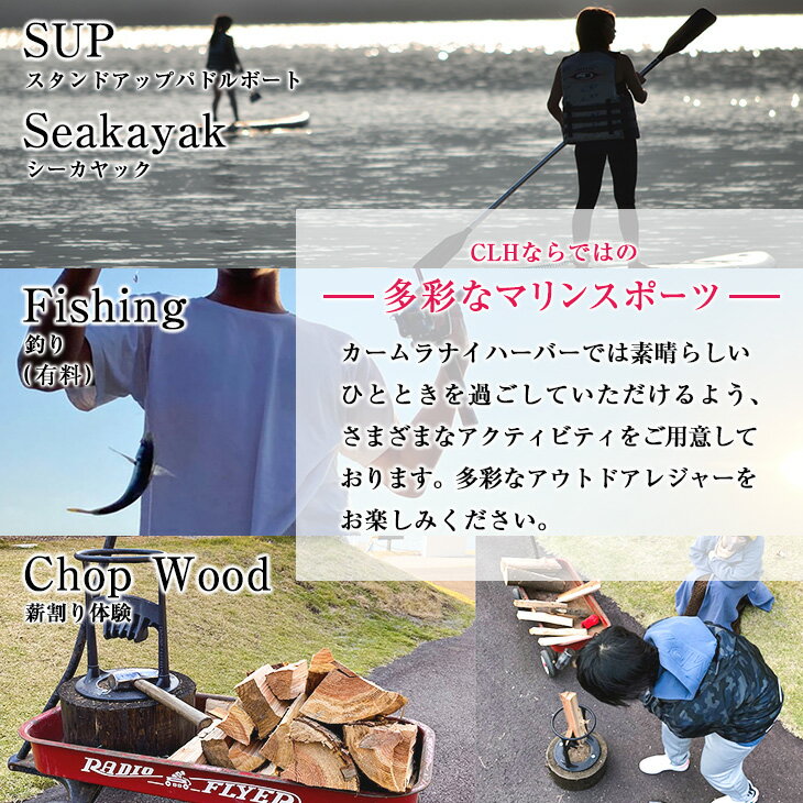製品仕様 返礼品名 【ふるさと納税】カームラナイハーバー宿泊補助券(30,000円分) グランピング 旅行 チケット 宿泊券 国内 内容量 【30,000円分】 カームラナイハーバー宿泊補助券 配送方法 入金確認後、1~2週間以内に補助券を発送 ※ご利用の際は、事前予約をお願いいたします。 宿泊日はご予約状況により、ご希望に沿えない場合もございます。 商品説明 \心も体も癒される!!/ \心地よい空間で贅沢なひとときを!!/ 宮崎県日南市のプライベートハーバーから『宿泊補助券(30,000円分)』を返礼品としてご用意いたしました。 吹き抜けのコテージ、海を見渡すウッドテラスやレストランなど贅沢で優雅なひとときをお過ごしいただけます。 ・夕日を眺めながらのBBQは格別!! ・夜は波の音を聞きながら心地よい眠りに!! ・クルーズ船で美しい島々を巡れる!! ・SUPボードやシーカヤックを無料貸し出し!! この機会に、ぜひ『カームラナイハーバー宿泊補助券(30,000円分)』で特別なひとときをお過ごしください。 利用期限 発行日から1年間 利用方法 1.こちらの補助券は当施設「カームラナイハーバー」の宿泊料にのみご利用可能です。 ※宿泊日はご予約状況により、ご希望に沿えない場合もございます。 2.予約条件 ※ご入金確認後、1~2週間以内に補助券を発送いたします。 ※お受け取り後は必ずすぐに開封し、中身のご確認をお願いいたします。 ※本券をご利用になる際には、必ず事前予約をお願いいたします。 ※ご予約は電話にて承ります。お部屋の空きがあれば前日でも予約可能です。 ※繁忙期につきましては追加料金が発生する場合がございますので、ご予約の際にご確認ください。 ※その他割引券との併用は不可となっております。 【お問い合わせ先】 カームラナイハーバー 電話 :0987-21-1887(8:00~17:00) 3.その他 その他サービス、ご不明な点につきましては当宿泊施設公式HPをご参照いただくか、直接宿泊施設にお問い合わせください。 注意事項 ※紛失された場合、本券の再発行/払い戻しはできません。有効期限日までにご利用をお願いいたします。 ※お受け取りができなかった場合の商品の保証は致しかねますので何卒ご了承ください。 ※旅行会社(旅行代理店)、宿泊予約サイト会社を介した予約に対する支払いには使用できませんのでご注意ください。 ※気象条件等により、安全にご利用していただけないと判断する場合、当施設の営業を中止させていただく場合がございますので、あらかじめご了承ください。 その場合は当施設から電話にてご連絡いたしますので、別日のご予約をお願いいたします。 なお、キャンセル料は発生いたしません。 ◆チェックイン・チェックアウト チェックイン 15:00~18:00 チェックアウト ~11:00 ◆食事について ※夕食はBBQとなります。(宮崎牛、豚、鶏、海鮮、ジビエ、ピザ、地獲れ魚のカルパッチョ) また、ワンドリンク制となります。 ※ご朝食はレストランでお召し上がりいただけます。 ※お食事の際の、飲食物の持ち込みは禁止となっております。 持ち込んだ場合、持ち込んだ分の40%相当の請求となりますのでご注意ください。 ※ペットとのご宿泊はお断りしております。 ※施設設備、アメニティ、ご利用ルール等につきましてはHPをご確認ください。 ※補助券を複数枚使用した際、宿泊料金を上回った場合でもおつりは出ませんのでご注意ください。 なお、宿泊料金が補助券の上限を上回った場合、現地で差額をお支払いいただきます。 ※転売・換金等はできません。 事業者名 株式会社わらしべ 地場産品基準 7号 日南市内に立地する観光・宿泊施設等において提供される役務のため おすすめ オススメ 食事付 宿 旅 トラベル 新婚旅行 家族旅行 観光地 九州 趣味 アウトドア レジャー 体験 運動 スポーツ マリンスポーツ サウナ 焼肉 焼き肉 BBQ バーベキュー 思い出 贈答用 贈答品 お返し プライベート お祝い 誕生日 記念日 イベント パーティー 息抜き リフレッシュ 休日 南国 おしゃれ お洒落 オシャレ ご褒美 地域コンテンツ体験型 ディナー モーニング 地域の品 お礼の品 最新ランキング 新着 バレンタイン バレンタインデー ホワイトデー クリスマス 母の日 父の日 GW ゴールデンウィーク シルバーウィーク 春休み 夏休み 秋休み 冬休み 日南市 宮崎県 ・ふるさと納税よくある質問は こちら ・寄附申込みのキャンセル、返礼品の変更・返品はできません。あらかじめご了承ください。