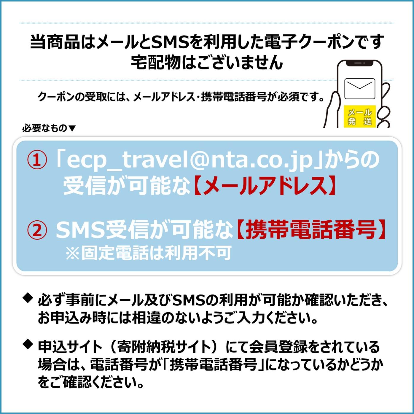 商品詳細 ふるさと納税で宮古島へ旅行に行こう! 宮古島市内に1泊以上の宿泊を伴うご旅行であれば、宿泊費だけでなく、現地までの交通費や現地での観光・体験等の精算にまで幅広く利用できる地域限定旅行クーポンです。 有効期間は発行日より5年間OK! ※当商品はメールとSMSを利用した電子クーポンとなっております。宅配物はございません。 ※ご旅行先(現地ホテル等)で直接ご利用いただくことはできません。 ご旅行の相談・予約は、4店舗で受け付けております。電話・Eメールもしくはご来店にて承ります。 ※日本旅行ホームページなど、インターネットからのご予約は対象外となりますのでご注意ください。 お申込み時の注意事項 ■メールとSMSを利用した電子クーポンです。表示用URLを”メール”にて送付、初期パスワードを”SMS”にて送付します。 ■クーポンの受取には、メールアドレス・携帯電話番号が必須です。 1.「ecp_travel@nta.co.jp」からの受信が可能な【メールアドレス】 2.SMS受信が可能な【携帯電話番号】※固定電話は利用不可 必ず事前にメール及びSMSの利用が可能か確認いただき、お申込み時には相違のないようご入力ください。 また、申込サイトにて会員登録をされている場合は、電話番号が「携帯電話番号」になっているかどうかをご確認ください。 ■キャリアメール(au、docomo、softbank)にてメール受信が拒否されるケースが多くなっております。 「ecp_travel@nta.co.jp」からのメールが受信できるよう設定ください。 ■フリーメール(yahoo,Gmailなど)では迷惑メールに自動振り分けされるケースが多くなっております。 受信フォルダに届かない場合は迷惑メールフォルダもご確認ください。 ■クーポンの受信やご利用等に関わるデータ通信料等はお客様のご負担となります。 クーポン使用時の注意事項 ■クーポン画面には、寄附自治体名、有効期限、金額(残高)が表示されます。メール受信後、お申込み内容と合わせてご確認ください。 ■クーポン画面に表示される「カード番号」「PIN」が旅行精算時に必要となります。 ■クーポンを使用できるのはご本人様に限ります(贈答用対応不可、第三者への譲渡不可)。ご旅行参加者はご本人以外の方も有効です。 ■当クーポンは宮古島市内の宿泊施設に宿泊する旅行をお申し込みの場合に限り、ご旅行の精算にご利用いただけます。なお、合わせて宮古島市外の宿泊施設の予約を承ることも可能ですが、宮古島市外の宿泊代金の精算に当クーポンをご利用いただくことはできません。 使用条件 ■ご利用は株式会社日本旅行の契約施設に限ります。 ■総務省告示第二百三号を受け、2024年10月1日以降の発行分より、当該宿泊施設の運営会社が該当自治体の属する都道府県外にも施設展開している場合、1人1泊5万円を超えるものはクーポン精算の対象外となります。 ■当クーポンは1円単位でお使いいただけます。一部金額を利用すると「残高」として残額が表示され、有効期間内であれば次回にもご利用可能です。 ■ご精算時は、お名前やご連絡先など旅行予約情報のほか、「寄附自治体名、カード番号、PIN、残高」をお聞きします。 ■お客様都合による旅行取消で取消料が発生する場合は、取消料は現金またはクレジットカードでの収受となり、当クーポンの残高は返却します。天災等お客様都合によらない旅行中止の場合は、当クーポンの残高を返却し、差額徴収分があれば返金となります。 ■その他詳しいご利用条件は、クーポンURLと一緒にメールでお送りする案内をご参照ください。 ■寄附お申し込み後、クーポン自体のキャンセル及び返品はお受けいたしかねますので、予めご了承ください。 容量 宮古島市内に1泊以上を条件とする、旅行代金の精算に利用できるクーポン 90,000円分 発送期日 ご入金確認後、1週間前後でメール・SMS送付。 ※送付日の希望はお受けできません。 【年末年始の送信スケジュールについて】 ※2025年12月20日から2026年1月9日までの受注分につきましては、2026年1月15日より順次発送いたします。 寄附者様にはご迷惑をおかけいたしますが、何卒ご理解たまわりますようお願い申し上げます。 ※メールアドレスや携帯電話番号(SMS送付先)の入力間違いがある場合は、上記期間以前に寄附いただいても送信が遅れる場合があります。予めご了承ください。 利用人数 制限なし 有効期限 発行日より5年間有効 事業者名 事業者名 株式会社 日本旅行「ふるさと納税」寄付金は、下記の事業を推進する資金として活用してまいります。 (1)市長お任せコース (2)エコアイランド宮古島応援コース (3)スポーツアイランド宮古島応援コース (4)宮古島の子育て応援コース (5)宮古島の人材育成応援コース (6)がんずう( 健康 )宮古島応援コース (7)芸術・文化振興の宮古島応援コース