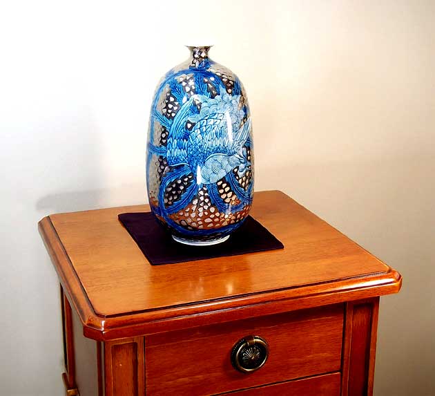 大公孫樹 口屋番所跡 有田内山の町並みから泉山へ向かう道を歩くと通りから大きなイチョウの樹が目に留まる。 大公孫樹と呼ばれるこのイチョウは泉山弁財天神社境内にある。おそらく日本一であろうイチョウの樹だ。樹齢約1,000年、高さ40m、根回り18m、 枝張り東西31mの巨木だ。 「秋の有田陶磁器まつり」が開催される11月中〜下旬は巨木全体の葉が黄色に色づき、足元に黄色の絨毯が広がりロマンティックな散歩道になる。 トンバイ塀 町を歩くと独特な風情を醸し出す塀が目に入る。トンバイ塀と呼ばれるその塀は古い窯を構成していた石を再利用したものだ。古来から伝わる生活の知恵が町の随所に生かされている。どこぞの窯でどんな人がどんな陶磁器を焼いたものだろうか、思いを馳せ歩くのもご一興だ。 お勧め慶事・ギフト ●法人ギフト・企業 設立記念 開業祝い 開店祝い 創立記念 創業記念 周年記念 株式上場記念 株式公開記念 調印式記念 竣工記念 締結式記念品 目標達成記念の記念品 お祝い品 お取引先・お客様・お得意様向け高級贈答品 海外向け高級伝統工芸品お土産品 株主優待記念 ●繁栄・仕事・家庭 就任祝い 昇進祝い 栄転祝い 定年・退職祝い 永年勤続表彰 内祝い 快気祝い 全快祝 地鎮祭 新築祝い 新居祝い 改築祝い 増築祝い 落成記念 上棟祝い 結婚式引き出物 ●メモリアル・記念日・人生・長寿 結婚記念日 銀婚式 金婚式 お祝い 叙勲記念 褒章受賞 記念品 初老祝い 還暦祝い 古希祝い 傘寿祝い 喜寿祝い 米寿祝い 卒寿祝い 白寿祝い等の 長寿のお祝い 父の日ギフト 母の日ギフト 敬老の日ギフト 初任給プレゼント ホワイトデーお返しギフト 名入れギフト■作者の藤井錦彩(ふじい きんさい)は1976年、四百年の歴史を誇る陶磁器の本場、佐賀県有田に生まれる。陶芸の道を志、白磁の人間国宝・井上萬二氏や梶原茂正氏・照井一玄氏など、各界の第一人者に教えを乞い、腕を磨く。手造り・手描きの心を大切にし、有田焼の伝統に現代感覚を調和させた美意識と感性の世界を造り独自の作風を切り拓いています、各工芸展では栄えある賞を数多く受賞し、また全国各地の美術館や百貨店で個展が開催され美術愛好家がつめかけています。本作品は、有田焼の長い歴史と伝統に裏打ちされた技術でロクロを回し、全神経を筆先にそそぎ製作された比類なき陶芸作品です。床の間や玄関・応接間・リビングなど、どこでもお飾りいただけ、日本の伝統工芸の素晴らしさを実感できる珠玉の逸品です。価値ある美術コレクションとしてぜひご所蔵下さい。また、お祝いの品としても大変喜ばれ、贈る場面を選ばず、贈答品、法人ギフト、などの記念品としても最適で、世界各国の主賓への贈呈品としても重宝されている逸品です。 ■染錦プラチナ彩とは、1300度で焼成した白磁の上にプラチナで彩色して、800度でプラチナを焼付けた藤井錦彩独自の技法です。前面に焼付けられたプラチナは表面に微妙な陰影を表現しています。光があたる角度や、見る角度によりプラチナの光沢が変化し絶えず輝き続けます。有田焼の伝統に現代感覚を融合させた贅沢な作風です。 ■鳳凰は古来中国で、亀・麒麟・龍とともに四瑞と呼ばれる想像上の瑞鳥で「鳥の王」といわれています。鳳凰の伝承は飛鳥時代に日本に伝えられ装飾品や調度品など多種多様にその意匠は用いられ、現代でも吉兆をもたらす吉祥文様として愛好されています。 ■サイズ・高さ22.5cm 径12.5cm ■素材・磁器 ■デザイン・鳳凰(吉祥文様) ■限定作品・陶歴しおり付き。作者銘入り。木箱入り。 ■お取り扱い方法・有田焼の花瓶ですので特別なお手入れの必要はございません。