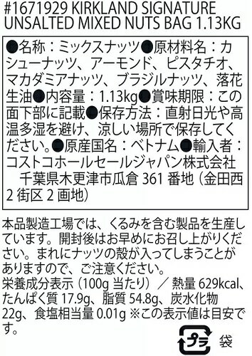 【在庫限り】【COSTCO】コストコ 【KIRKLAND】(カークランド】無塩 ミックス・ナッツ 1.13kg 無塩タイプ 【送料無料】