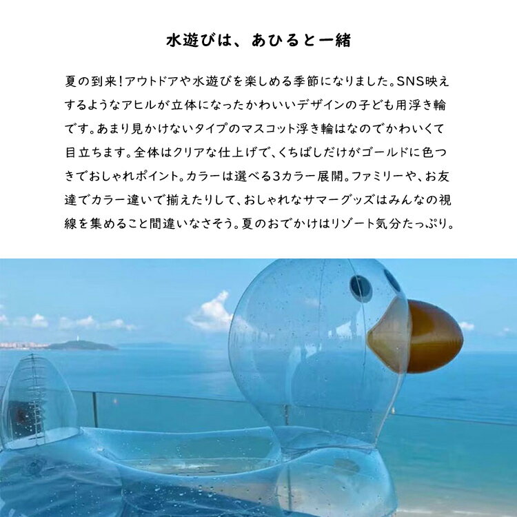 【 夏割 】 浮き輪 うきわ 子供 こども あひる プール 水遊び プール遊び アヒル 海 キッズ 子供用 海水浴 クリア 透明 川 フロート ナチュラル かわいい おしゃれ マリンスポーツ アウトドア ビーチ リゾート サマー こども SNS KIDS キャラクター 夏 O字型タイプ
