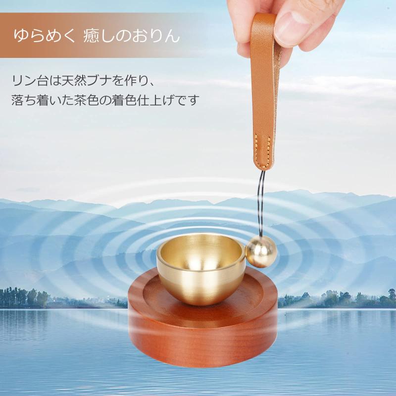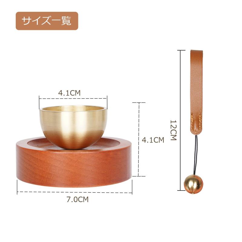 ATUSANO おりん 真鍮製 おりん仏具 綺麗な音色 仏壇りん シンプル おりん ミニ台座 天然木 おしゃれ 仏具 おりん りん棒 牛革 ブラウン