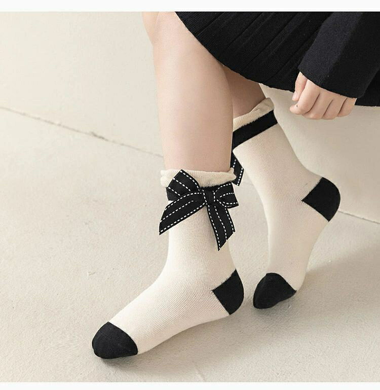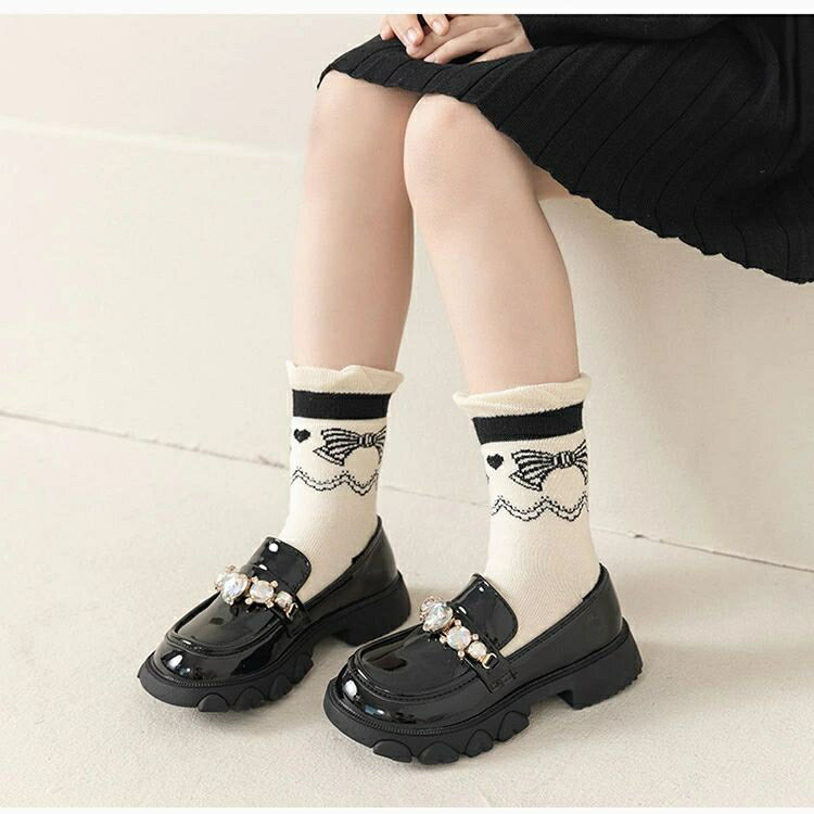 全商品10%OFFクーポン配布中 靴下 女の子 こども ソックス ベビーソックス 春秋 キッズ リボン付き 子供靴下 黒 白 ホワイト キッズソックス ロリータ ハイソックス 可愛い ジュニア ガーリー 女児 保育園 幼稚園 小学生 1-12歳